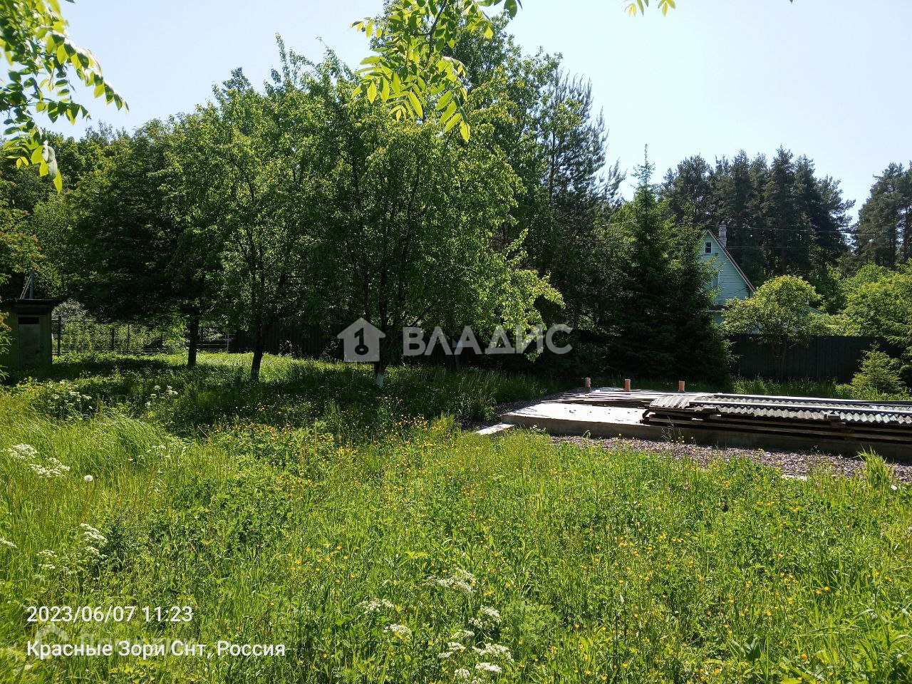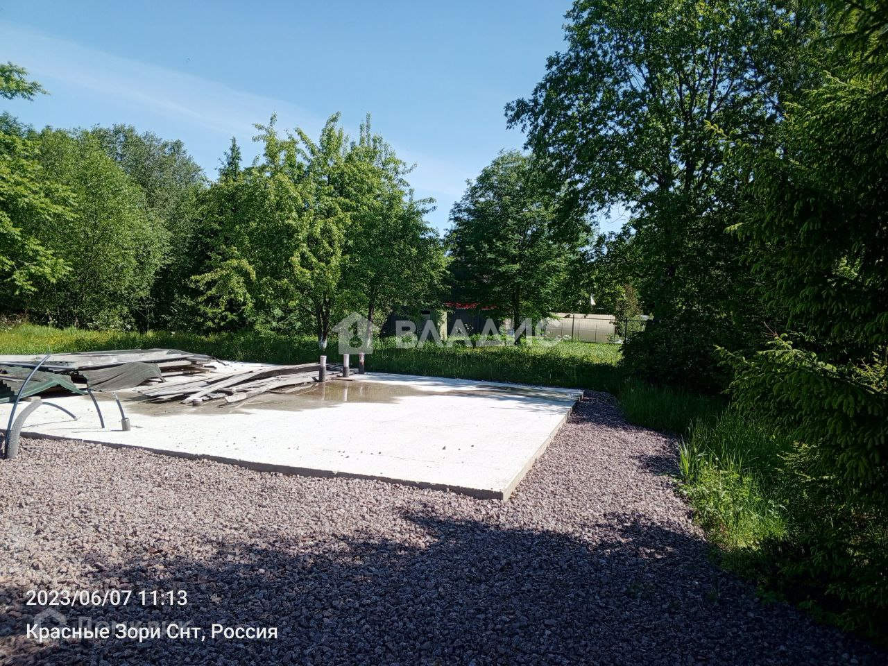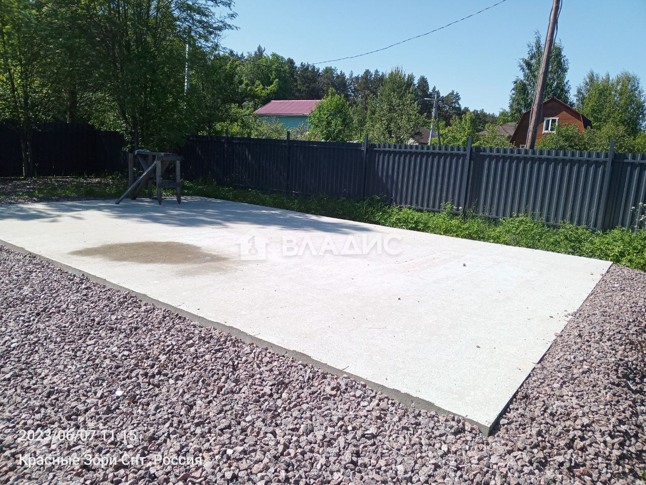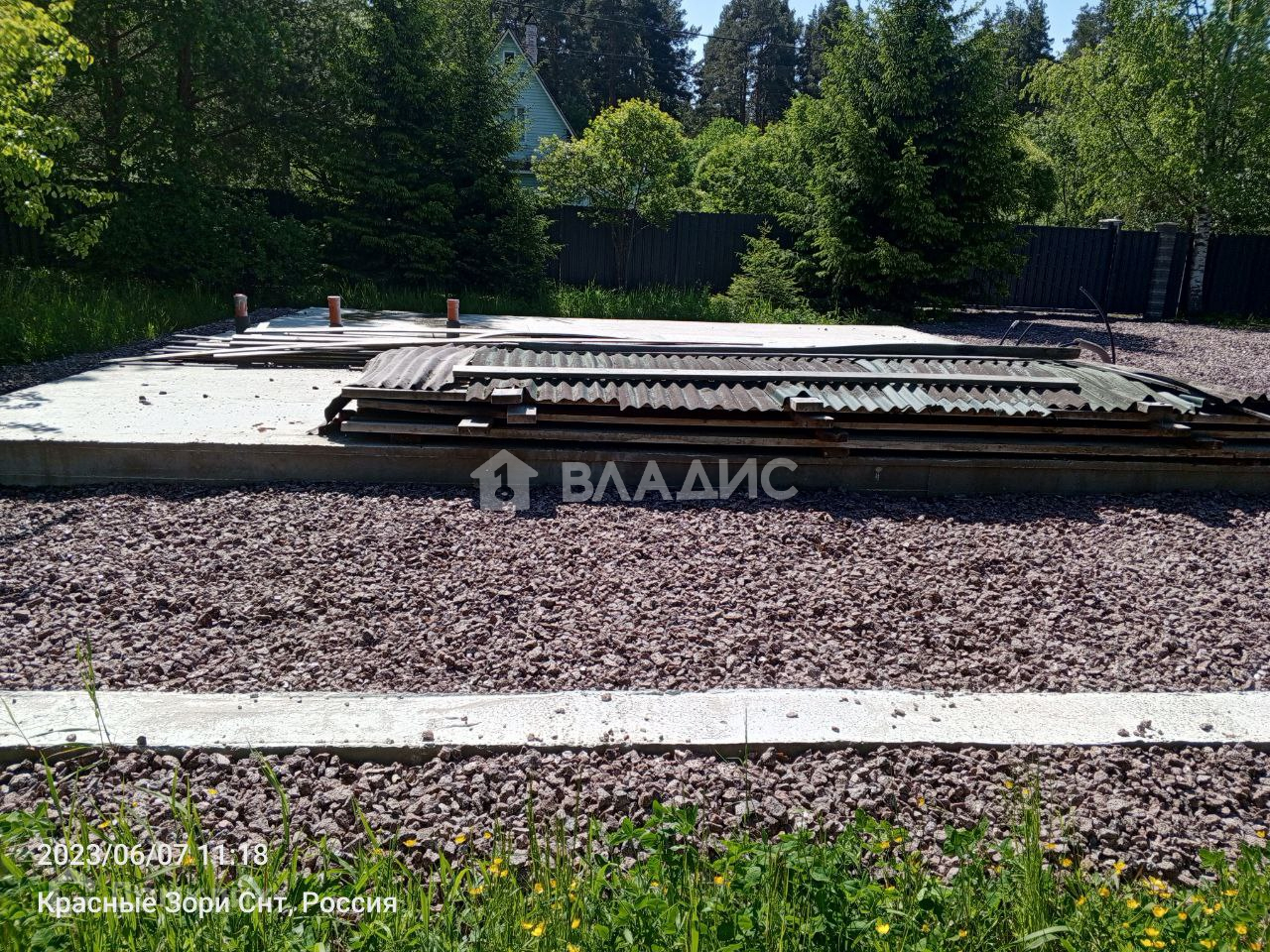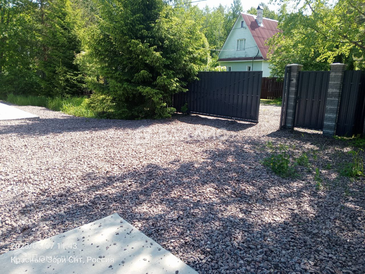 На участке залиты две плиты 9 х 6 метров и 13 х 9 метров, сделаны очень качественно, два слоя армирования, вся въездная группа отсыпана песком и гравием (по фото видно). Электричество - 15 кВТ, можно увеличить, линии новые. Интернет - оптика до участка. Место не проездное, окраина СНТ, светодиодное освещение улиц, дороги чистятся всегда. В окружении леса. Очень хорошие соседи, почти все живут постоянно.