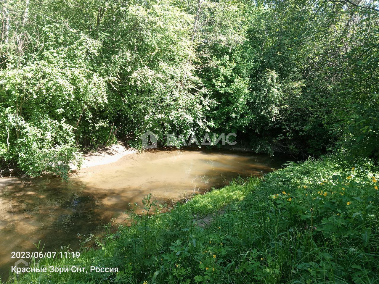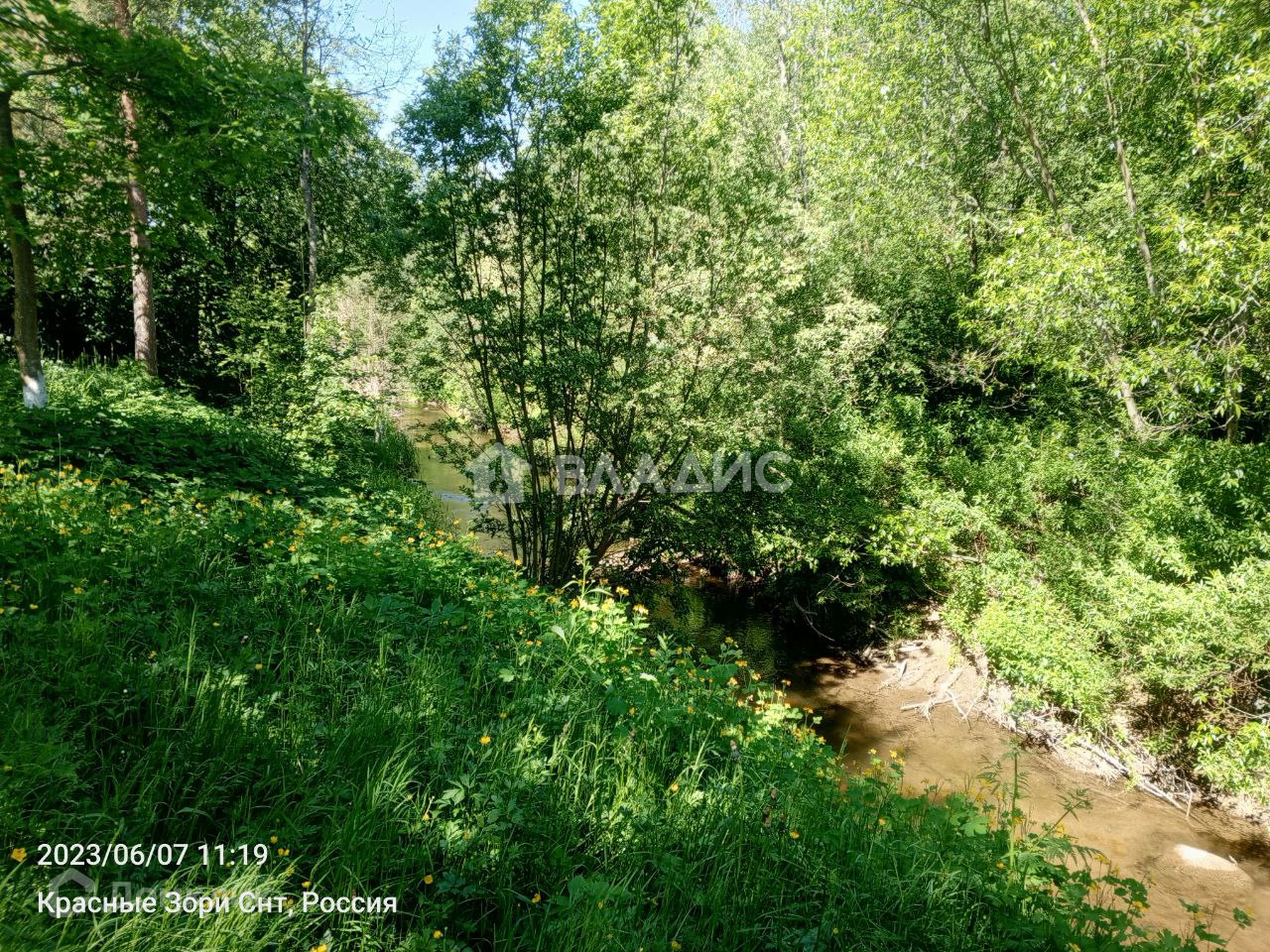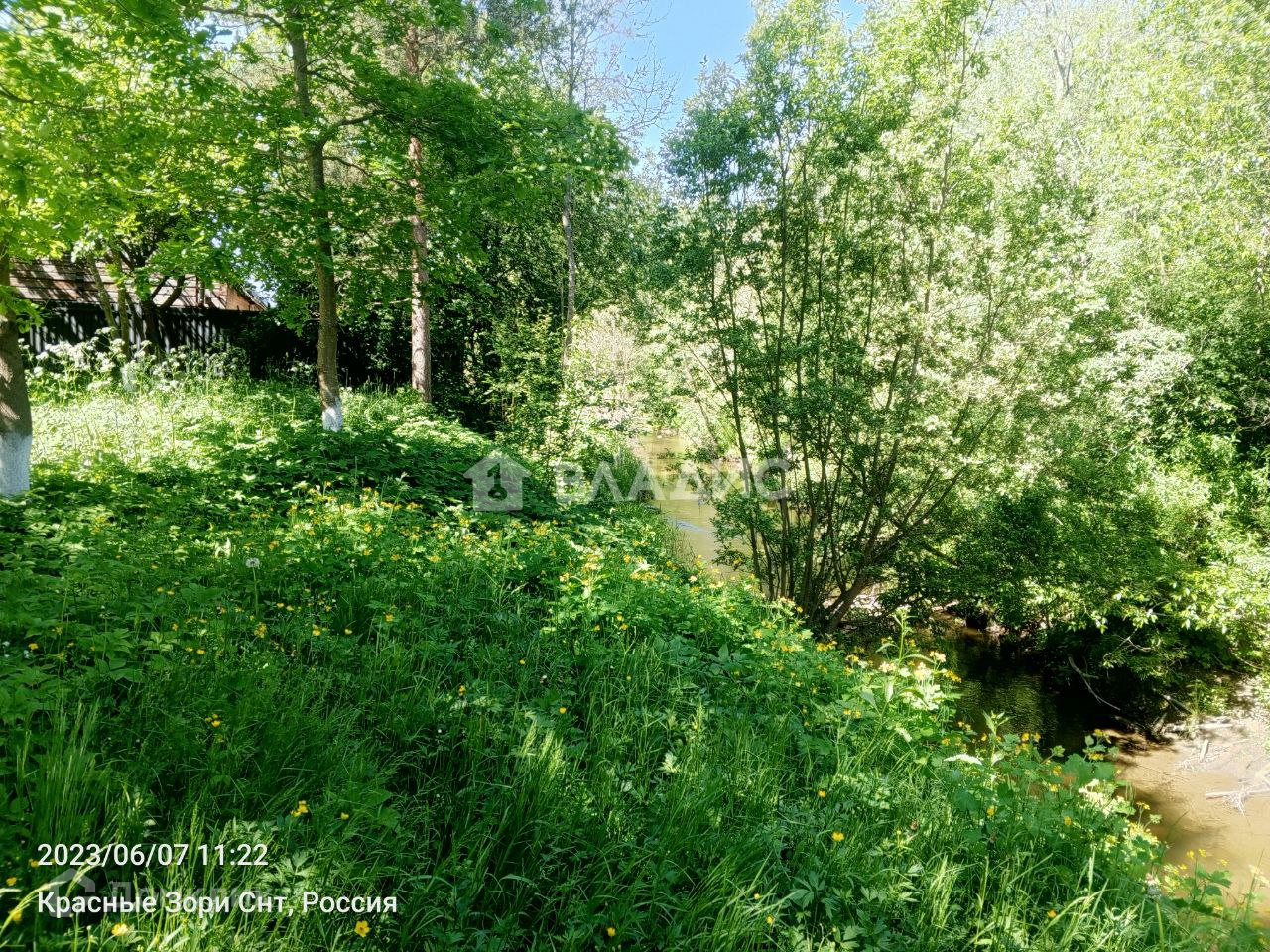 В городской черте, в окружении леса и со своей речкой по границе участка.