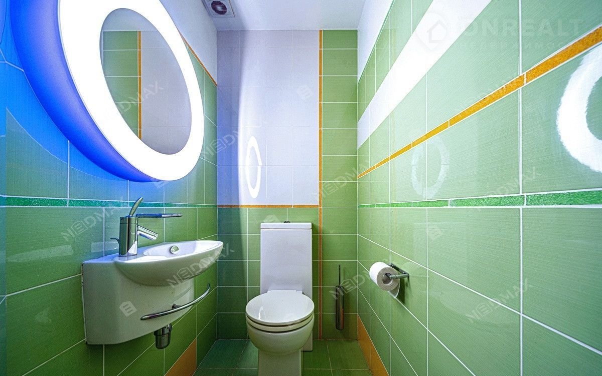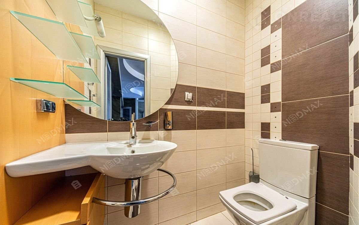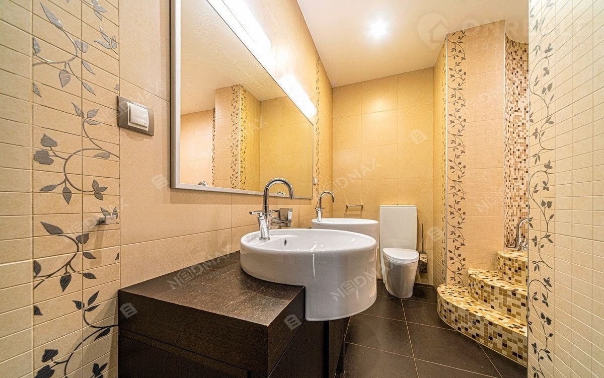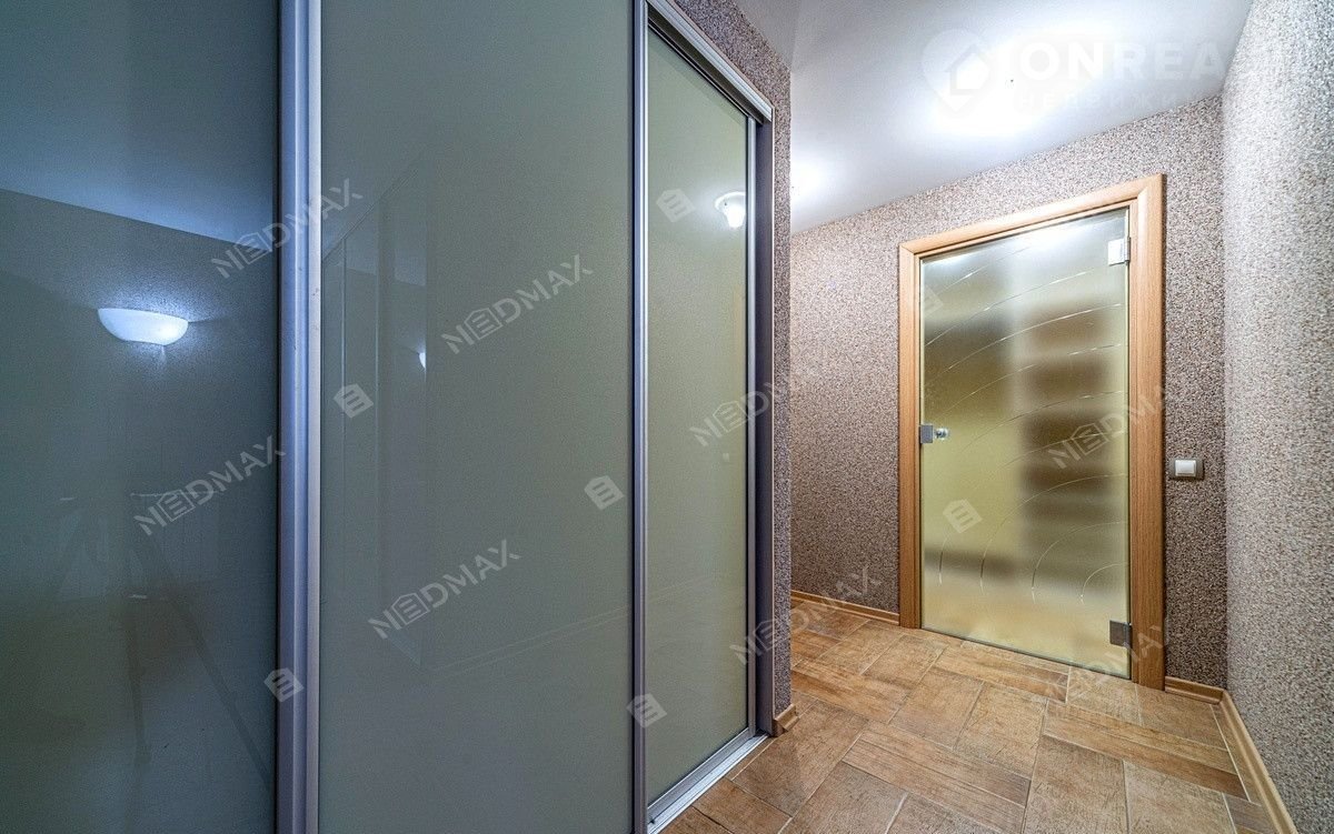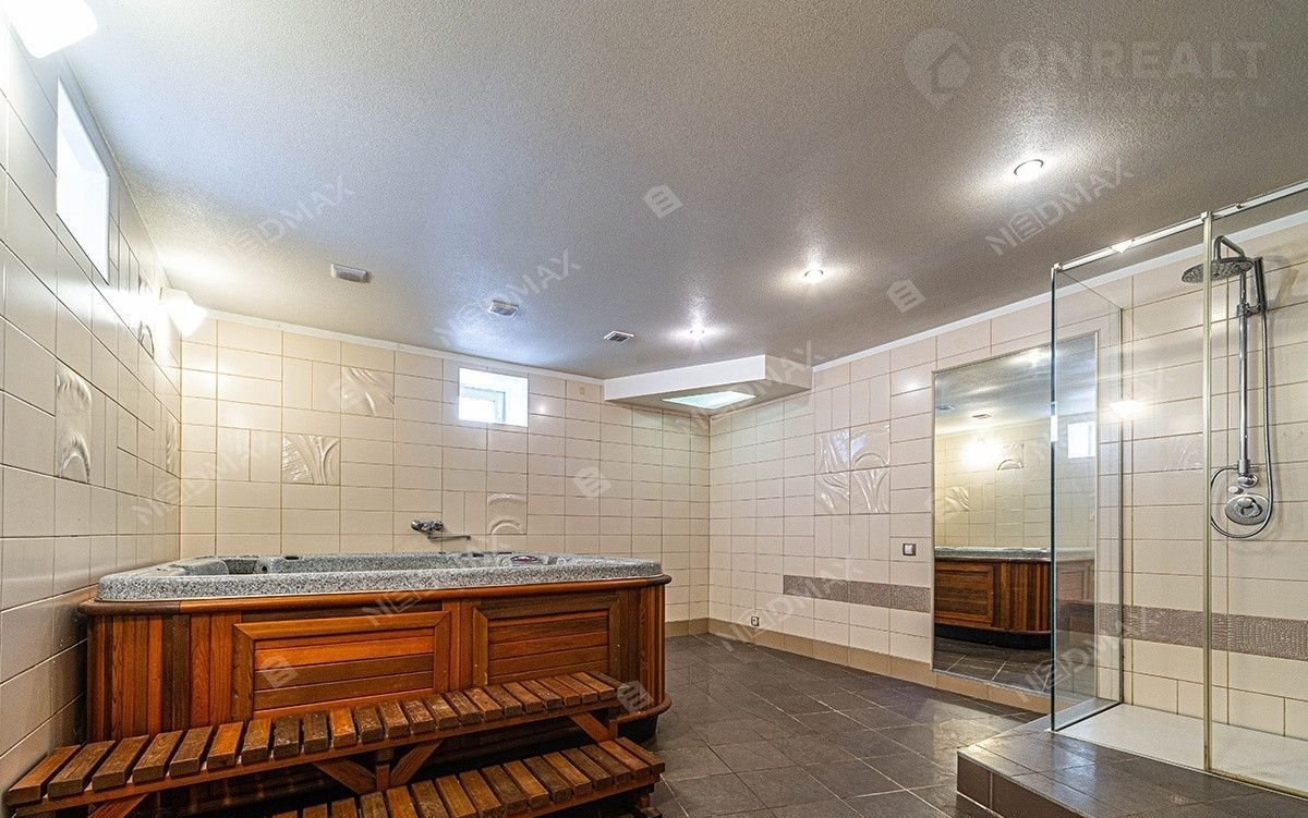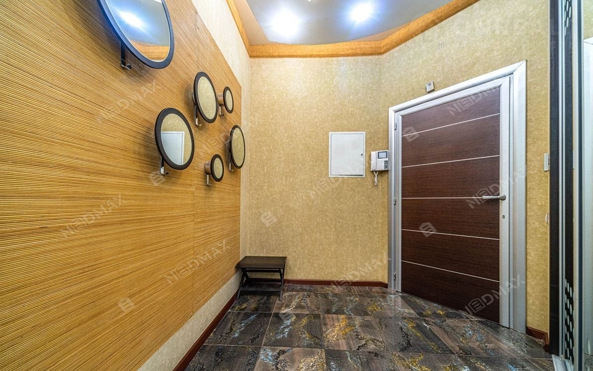 На нижнем уровне находится просторный кинозал. Также имеется просторная гардеробная комната. Одним из преимуществ квартиры является  джакузи и финская сауна. По всей квартире где лежит плитка установлен тёплый пол.