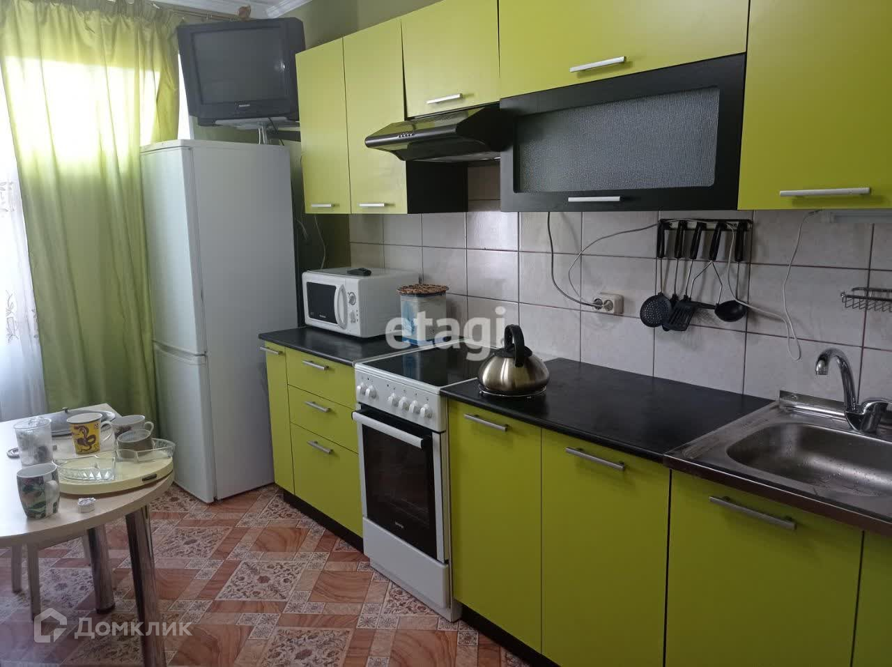 • Кухня оборудована холодильником, микроволновкой, плитой.