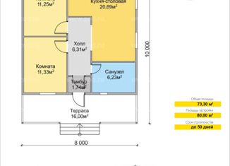 Общая площадь: 73.3 м2