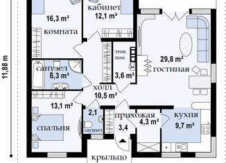 Общая площадь: 88 м2