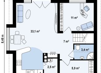 Общая площадь: 52 м2