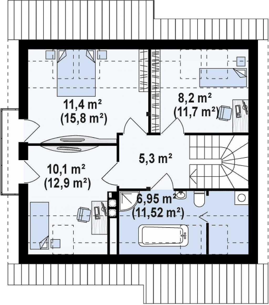 Площадь кровли 127 м²