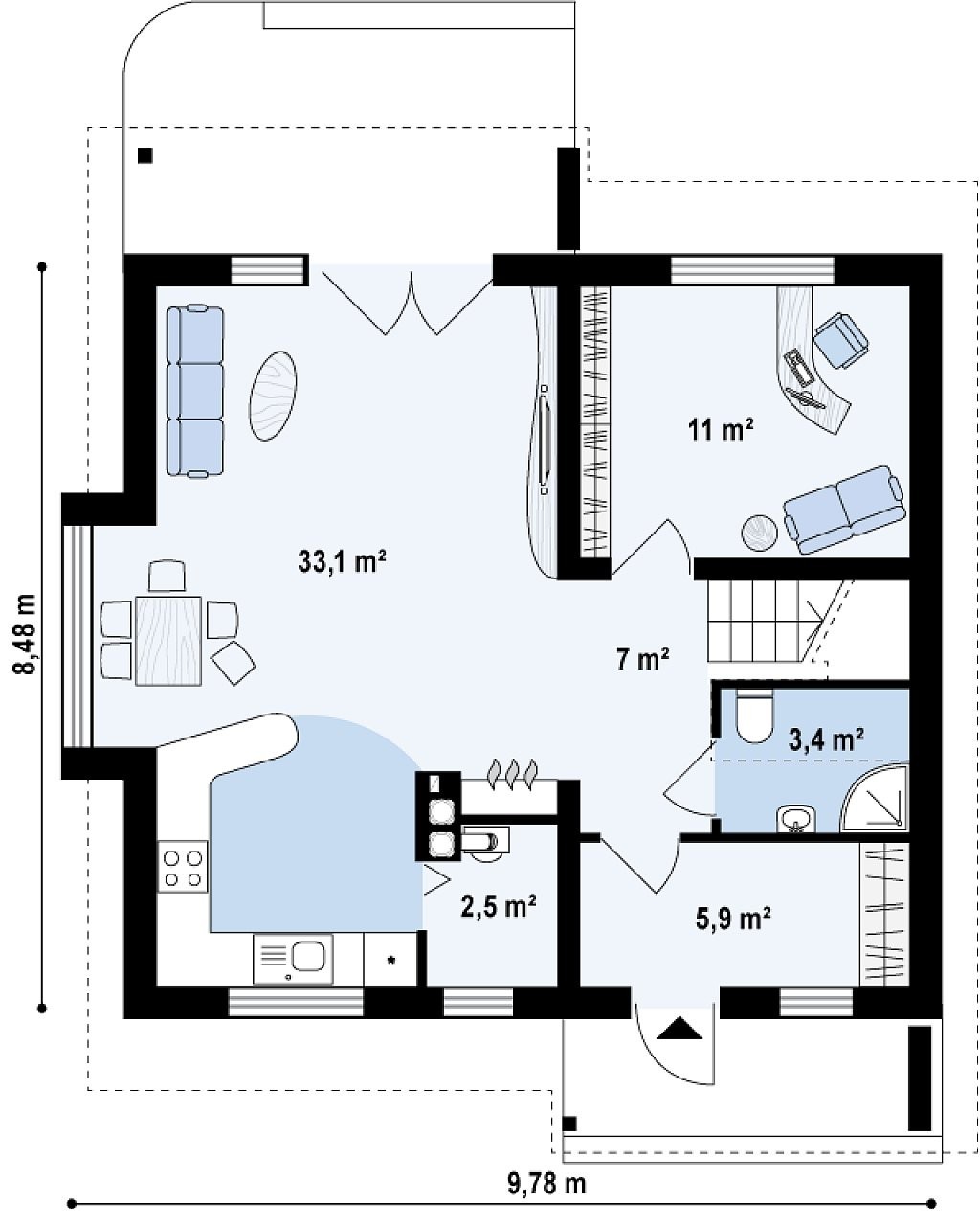 Площадь застройки 80 м²