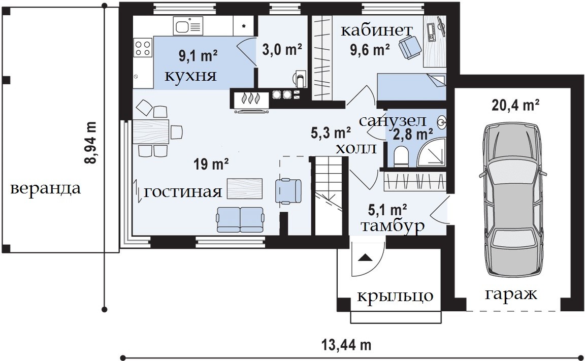 Общая площадь: 130 м2