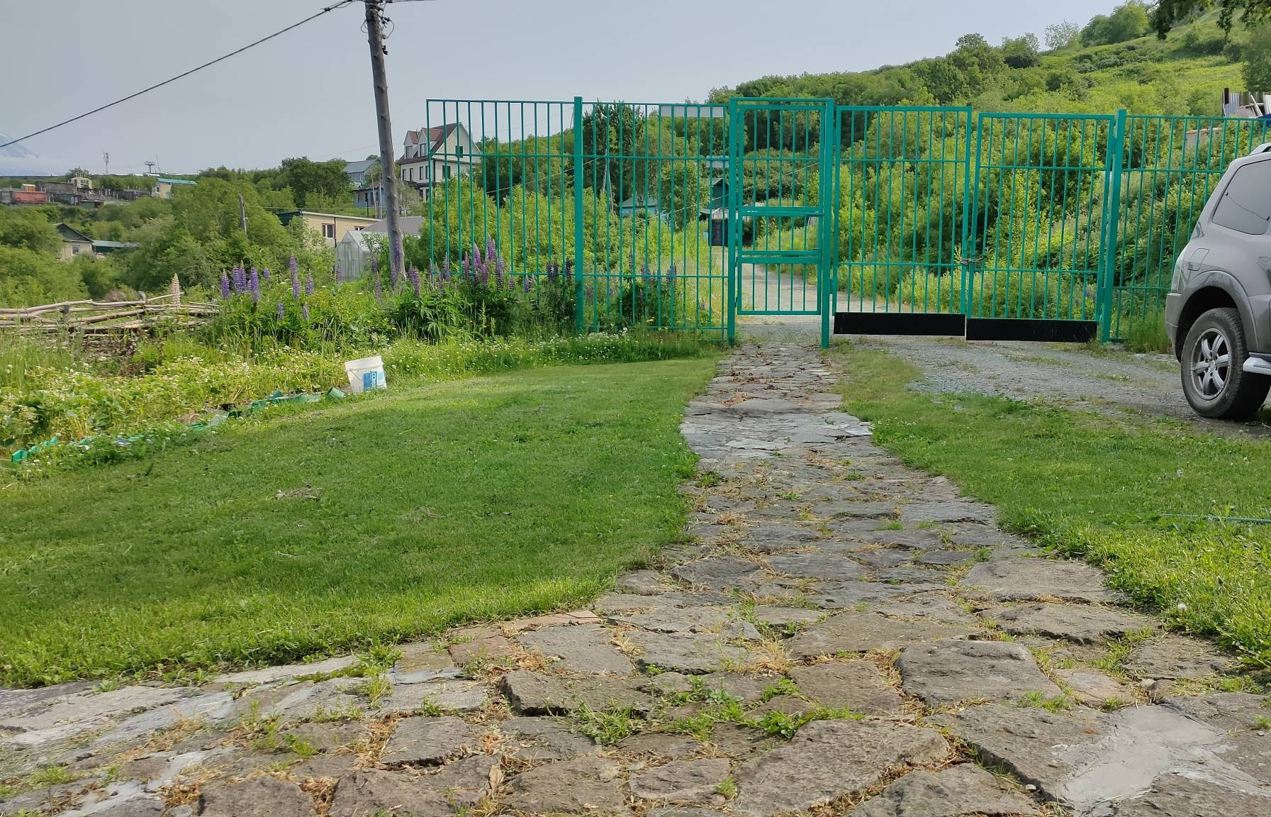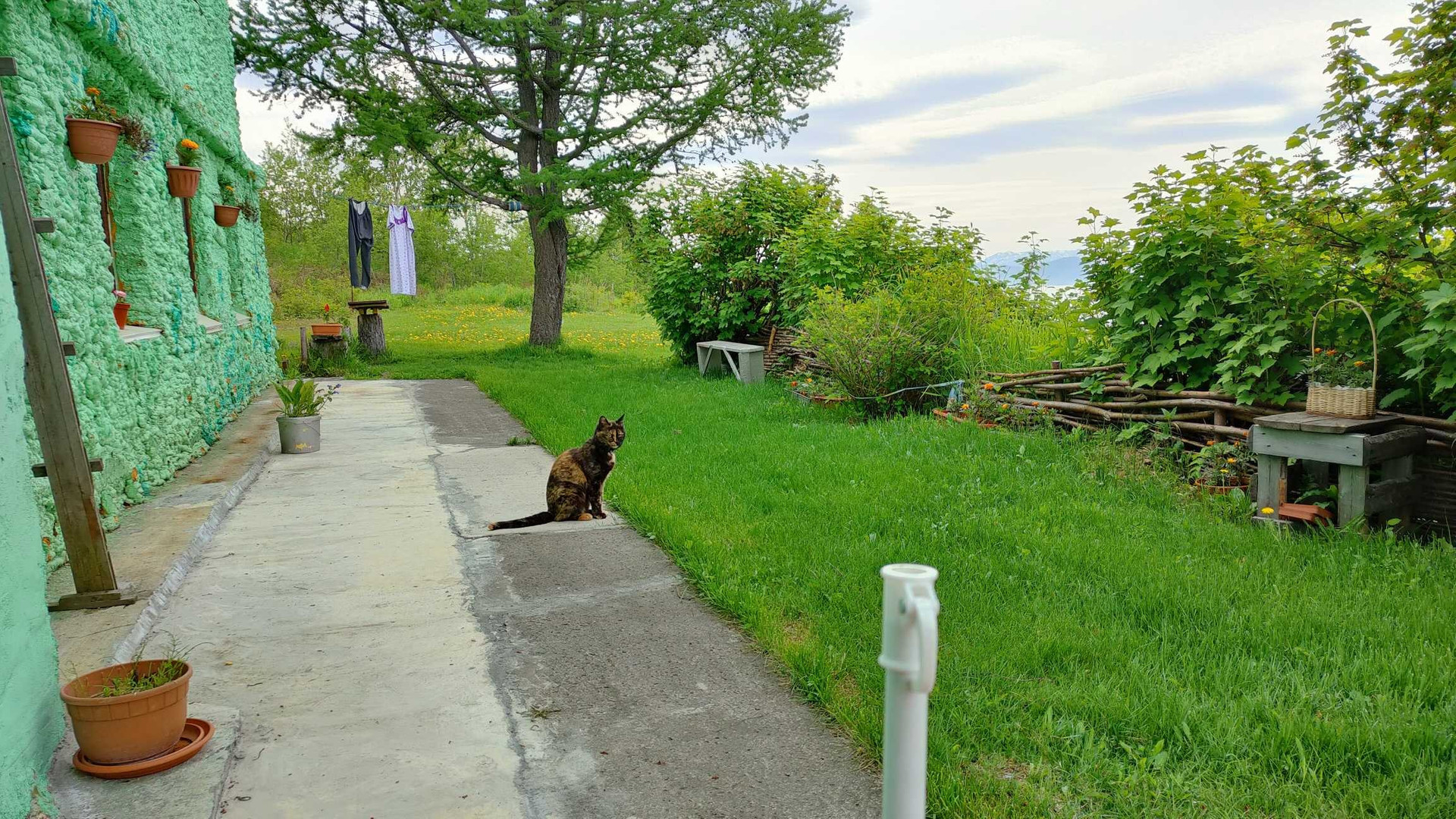 Участок ровный, на нём лужайка/газон, кусты ягод, клубника и декоративные растения, есть место для гаража, бани, беседок, сараев, контейнеров, скульптур и воплощения любых фантазий.