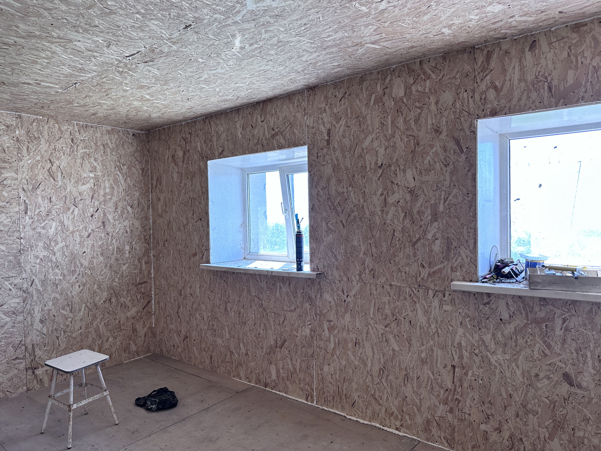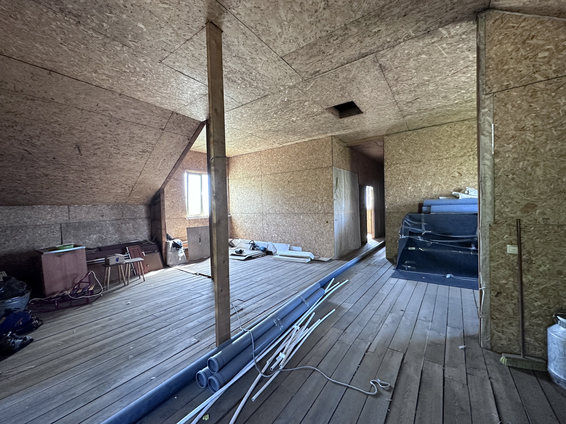 Первый этаж монолит, второй этаж из бруса, утеплён минватой.