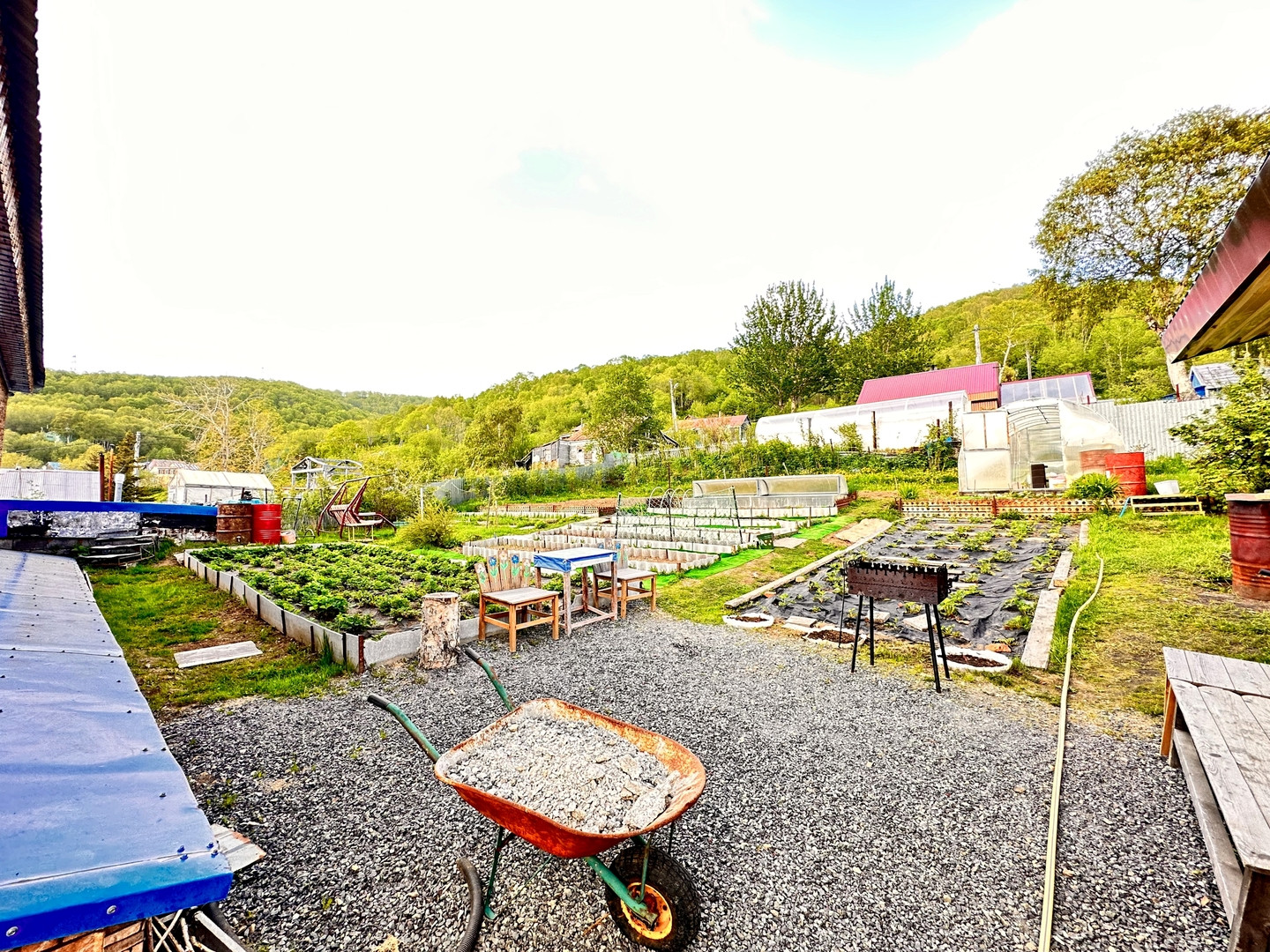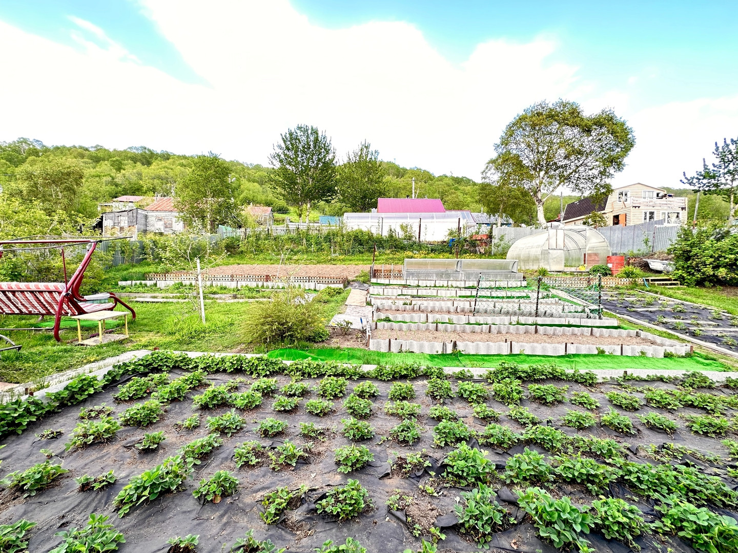 Участок 844 кв.м., ухожен с душой, по всему периметру установлено видеонаблюдение. На территории расположены: теплица и парник с поликарбоната, грядки, мангальная зона для отдыха, хоз.постройка, гараж и два септика. Посажены клубника, малина, смородина, ирга, яблони, крыжовник, калина и облепиха.