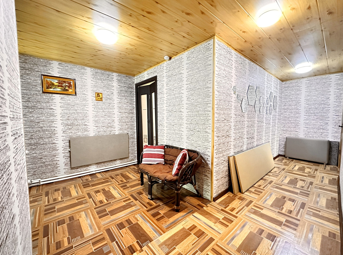 На первом этаже расположены кухня с обеденной зоной и комнатой отдыха с видеонаблюдением, санузел, котельная, гардеробная с сушилкой, выход в просторный гараж с погребом, прихожая))) На втором: Две раздельные спальни, кабинет, гостиная, санузел, балкон с бельевой верёвкой и запасной выход на улицу)))