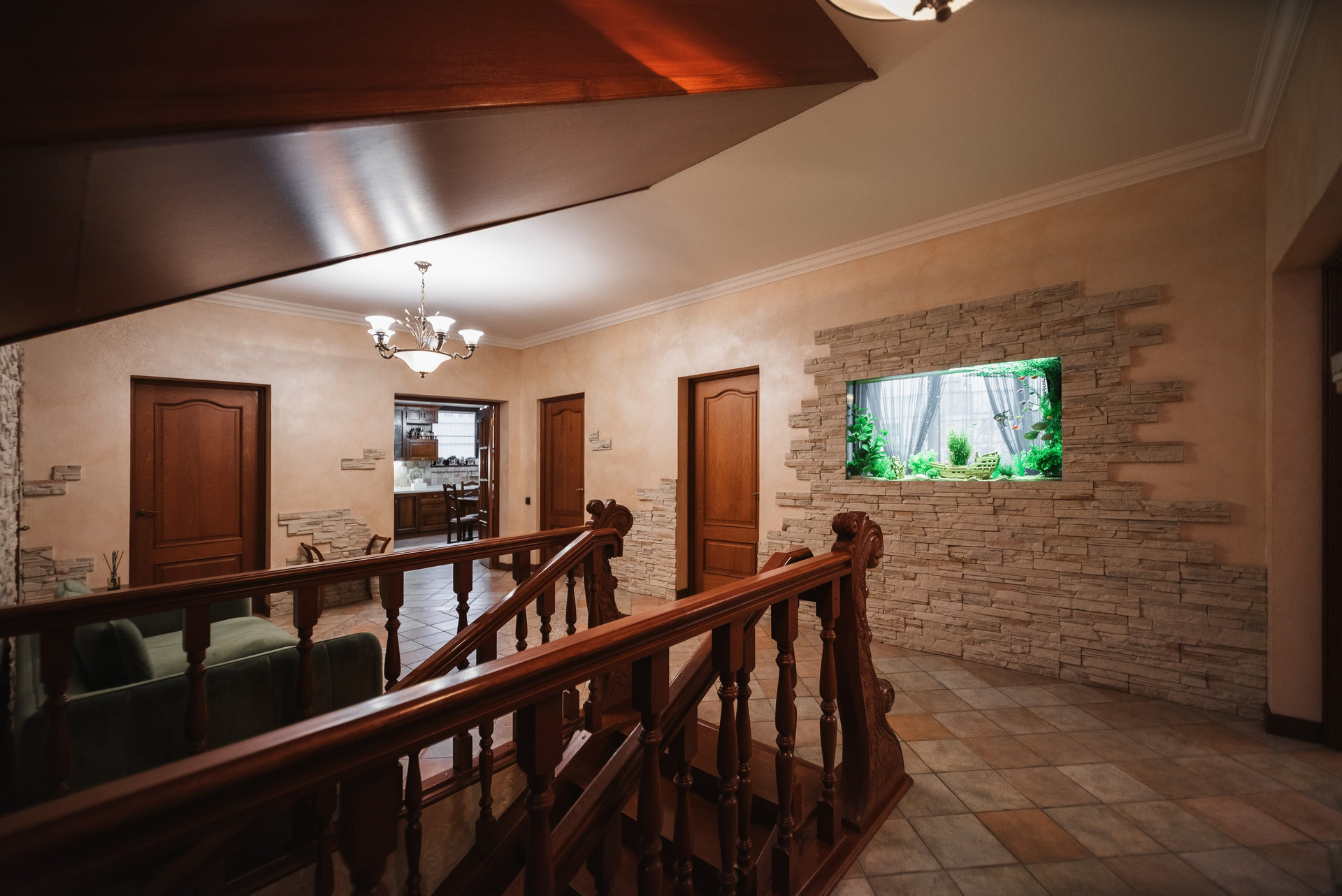 Внутренняя лестница выполнена из дуба.