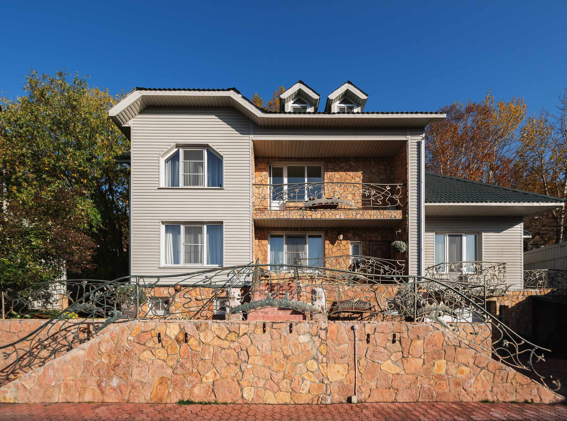 Трехэтажная монолитная конструкция дома включает более 412 квадратных метров жилых помещений: