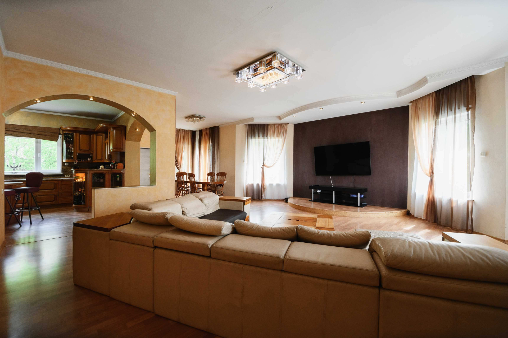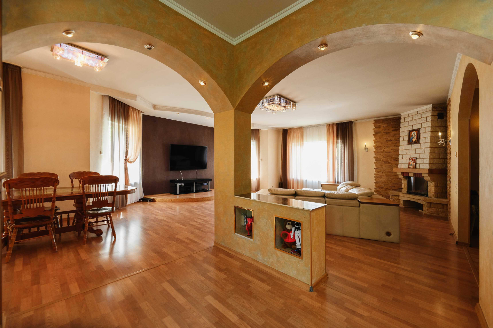 Дом 445 кв.м. подходит как для комфортного проживания обеспеченной семьи, так и для оборудования мини отеля.