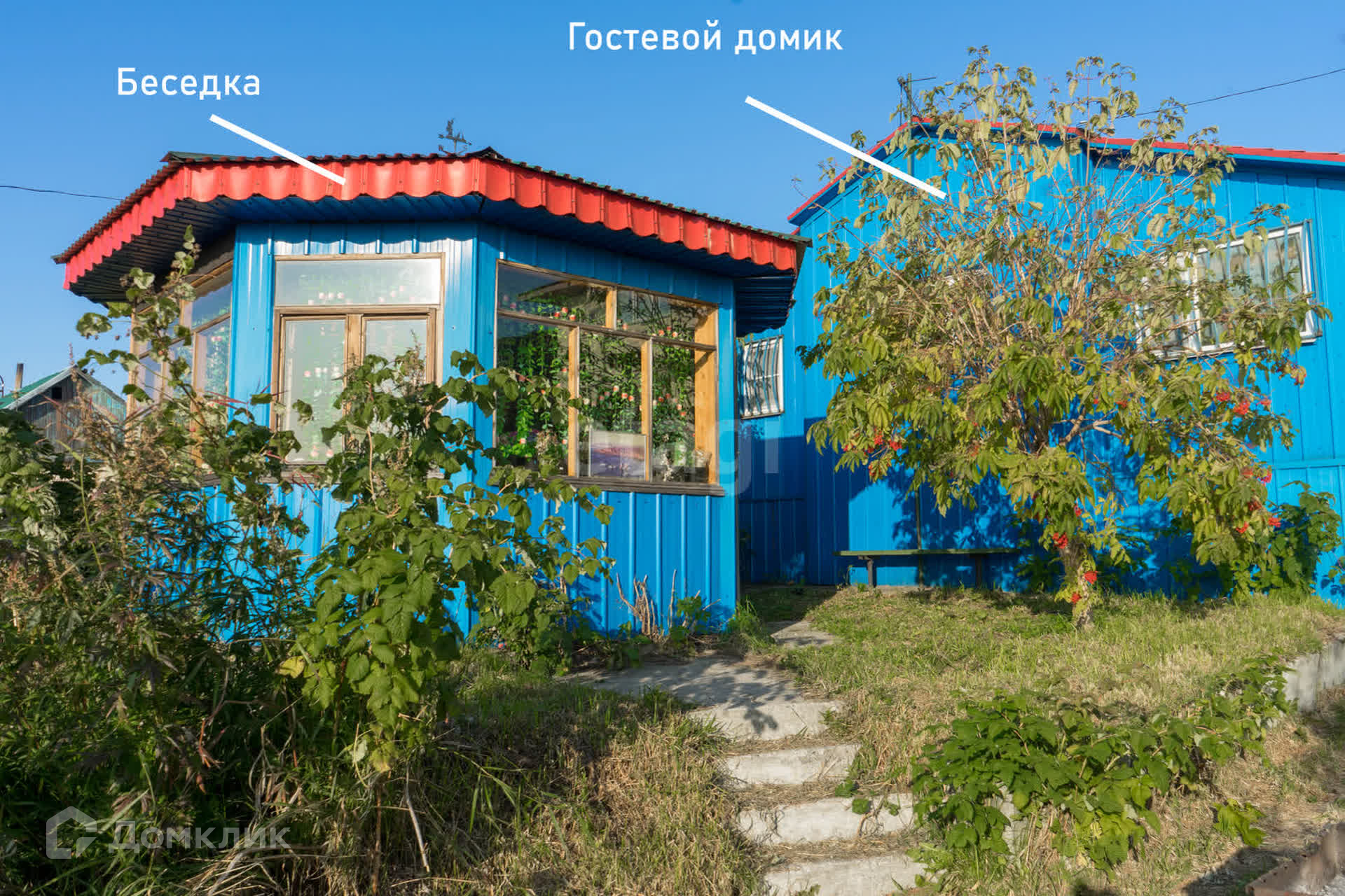 На участке дополнительно есть гараж на три машиноместа, гостевой домик, беседка, двухсекционная теплица, хозяйственный гараж. Гостевой домик полностью готов к проживанию: погреб, раздельные комнаты, кухня, санузел, отопление печью или электричеством, водоснабжение, септик.