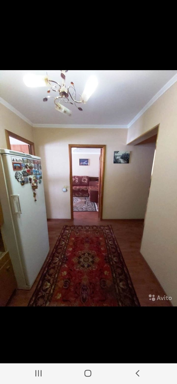 Большая прихожая. Комнаты изолированные, ванная и санузел раздельные в кафеле, горячее водоснабжение круглый год, кроме профилактических работ, установлены счётчики ГВС и ХВС, сантехника поменяна, стекло пакеты деревянные, установлены межкомнатные двери, потолки натяжные, а в кухне потолок плитка, пол ламинат, комнаты выходят на обе стороны дома, с прекрасным видом на сопку.