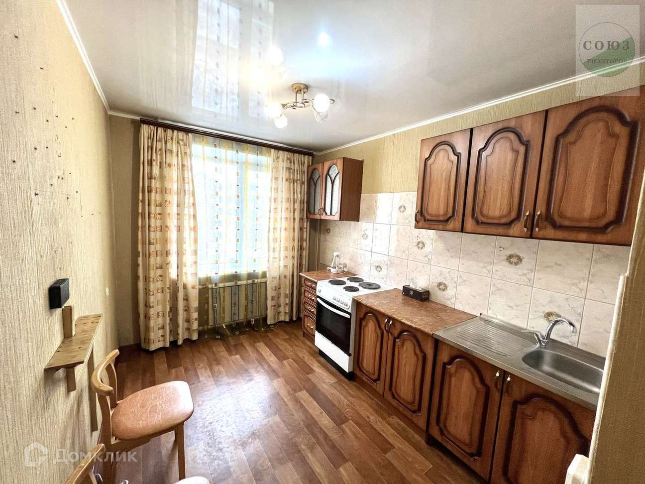 Ровные стены и натяжные потолки, заменены стеклопакеты, полы не скрипят.