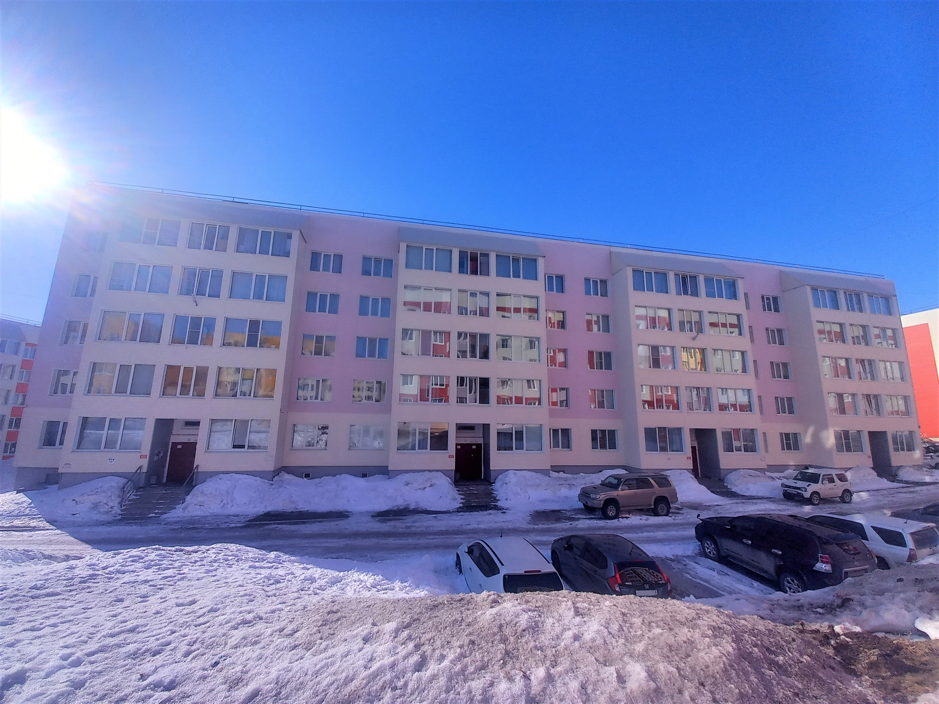 Две детские площадки под окном. Парковка с обеих сторон дома. Дом расположен внутри ансамбля новостроек. Яркие исправные фасады радуют глаз, а благополучный и доброжелательный контингент собственников жилья в районе гарантируют добрососедскую и безопасную атмосферу проживания Вам и Вашим деткам.
