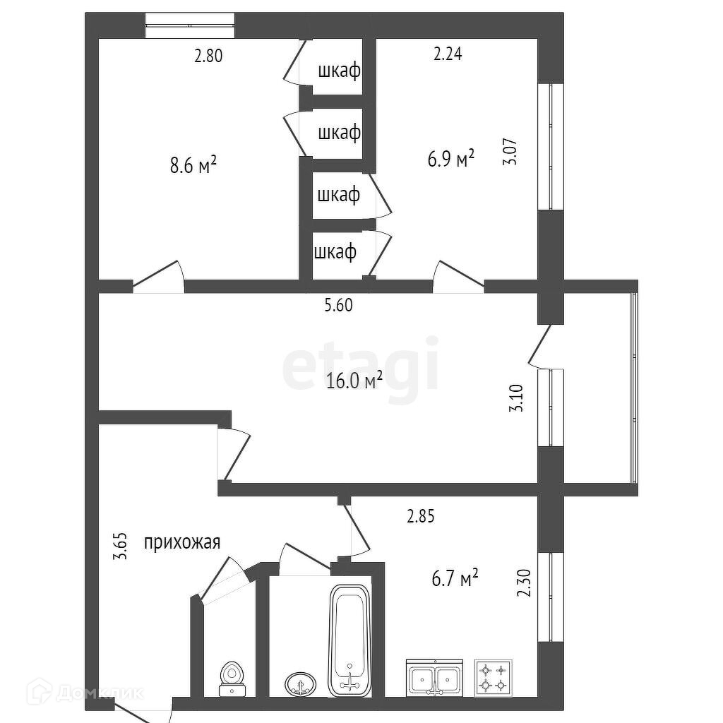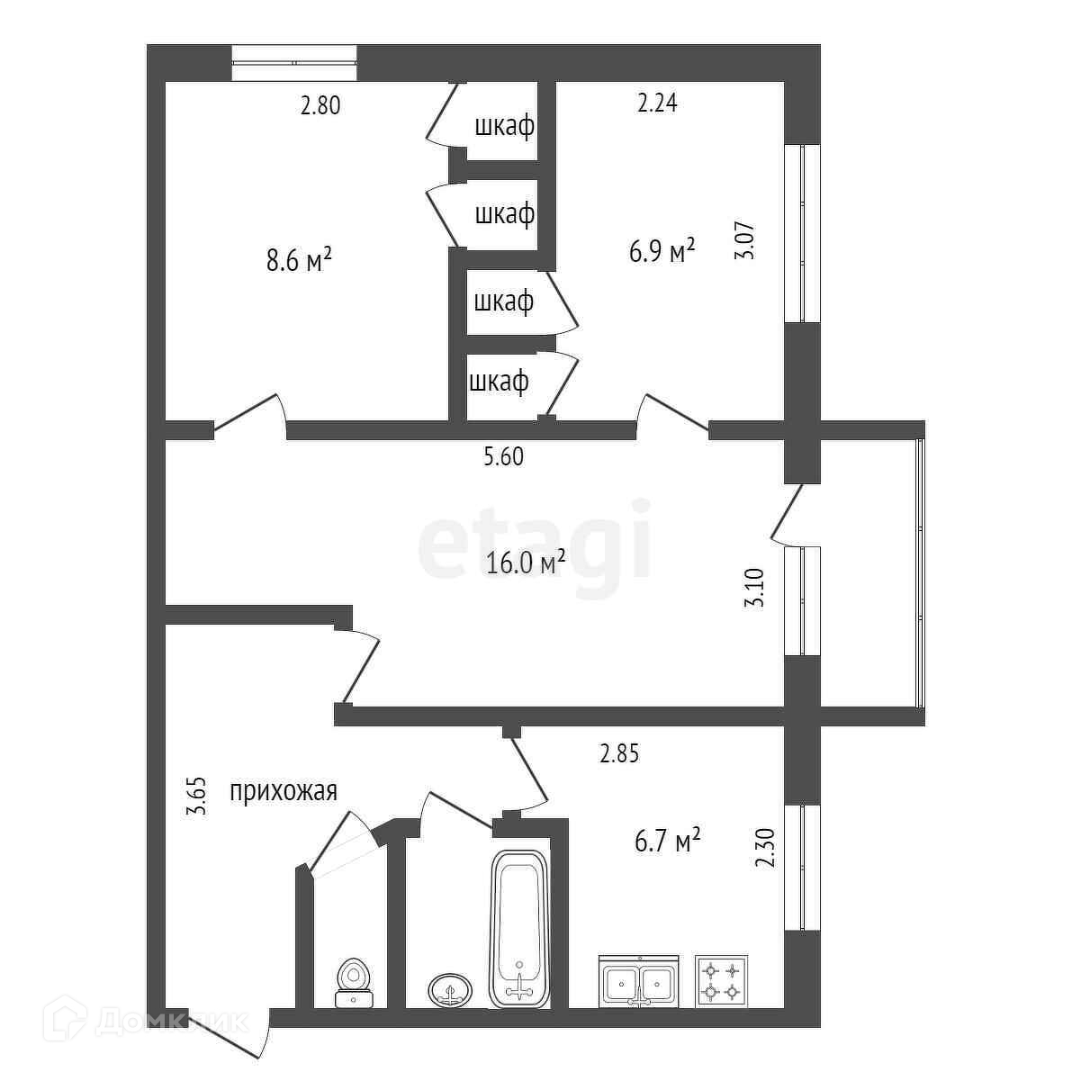 Общая площадь 47.7 м2