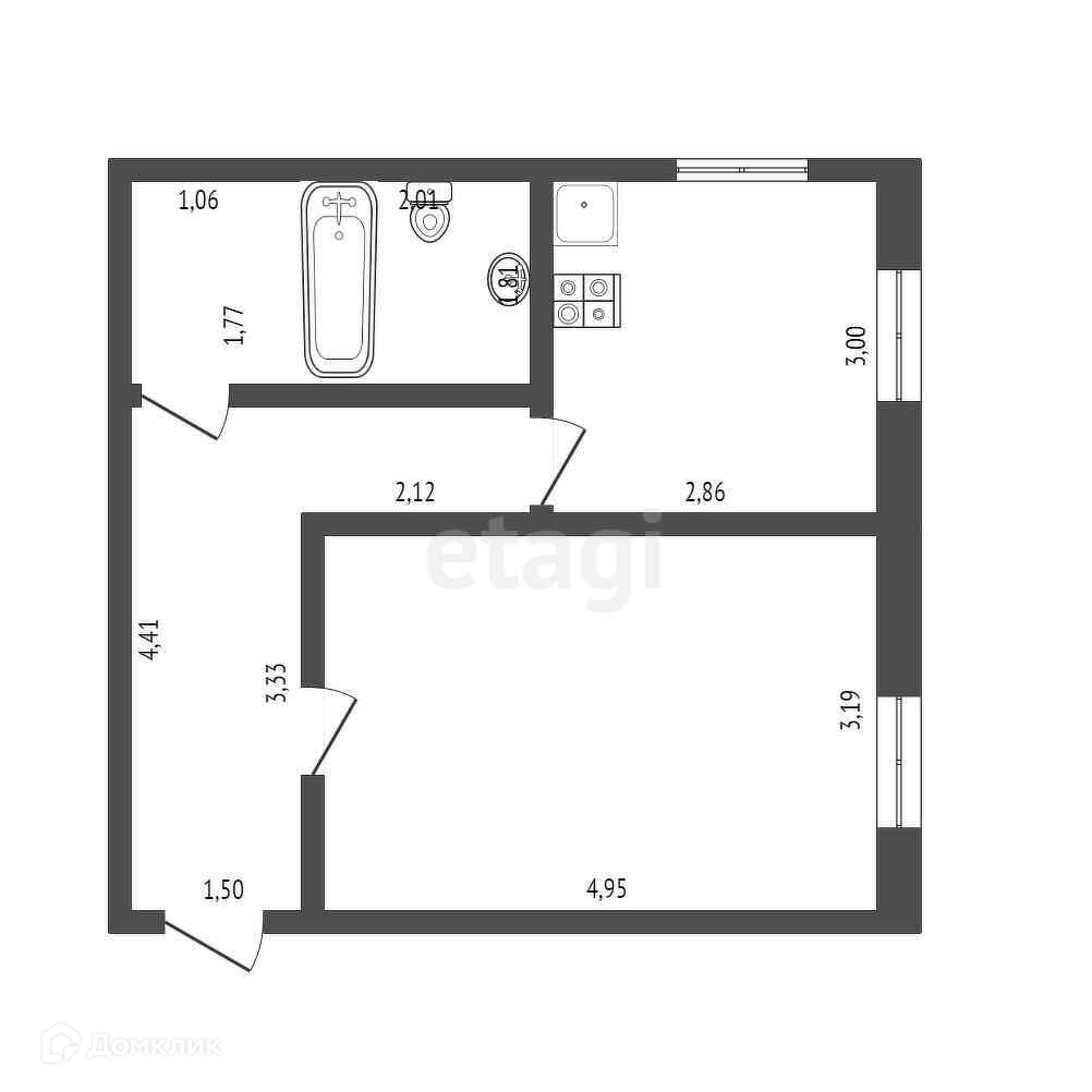Общая площадь 39.5 м2