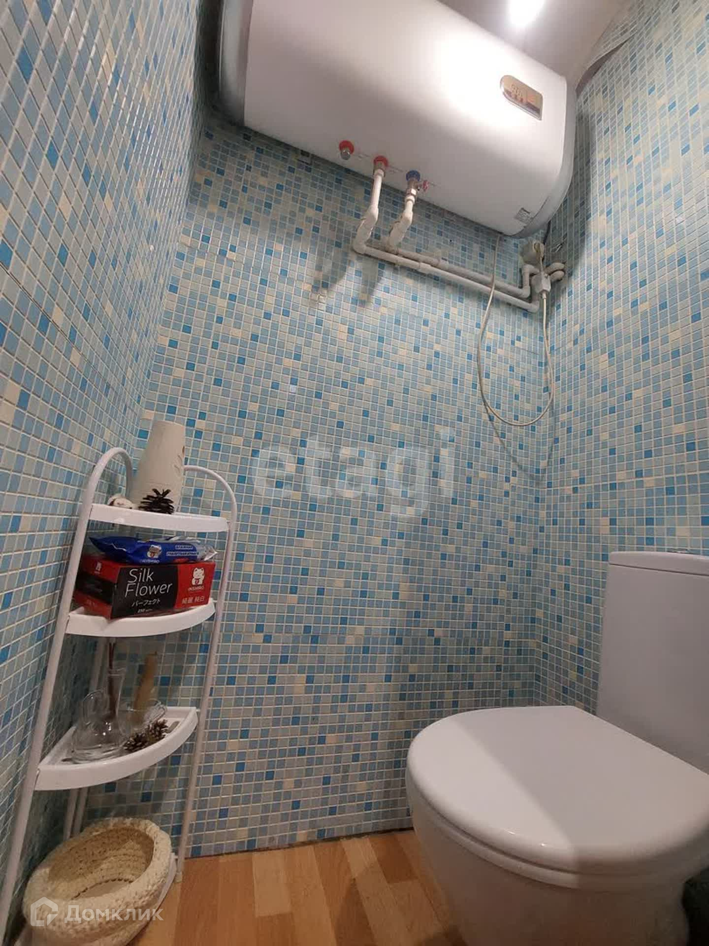 Во всей квартире, кроме гостиной и туалета - натяжные потолки. В туалете висит работающий титан, который остается новому владельцу.