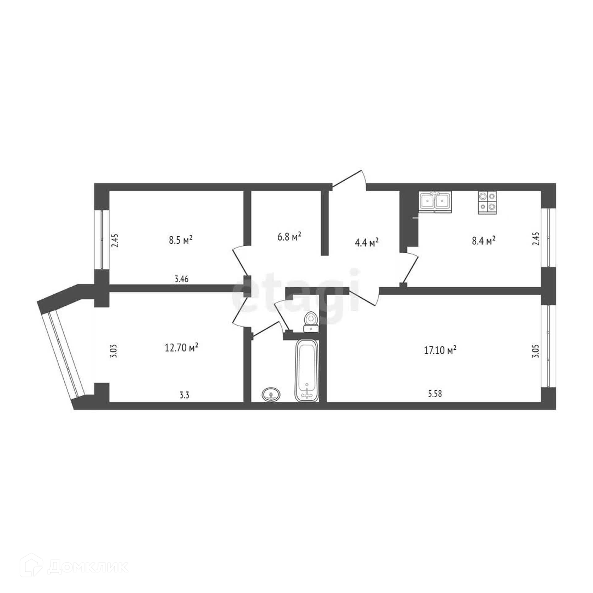 Общая площадь 62.2 м2