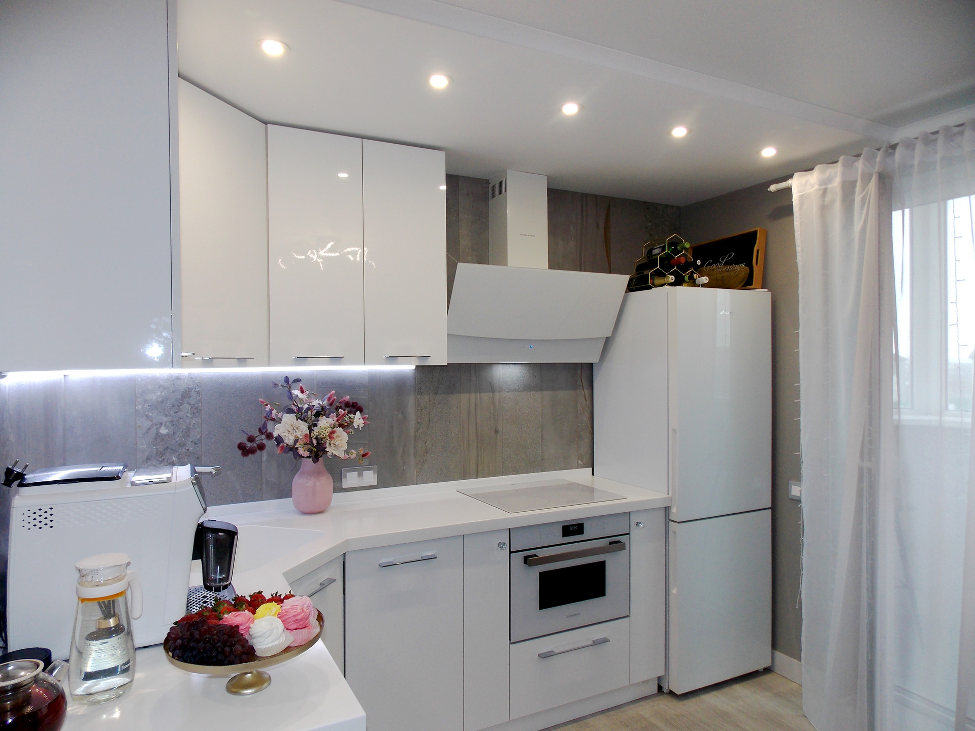 Техника: телевизор Samsung, телевизор Xiaomi, стиральная машинка на 7 кг «Bosсh», посудомоечная машинка на 40 см «Gorenie», вытяжка «ZIGMUND & SHTAIN», варочная панель «Whirhpool», духовой шкаф с функцией микроволновой печи «Maunfield».