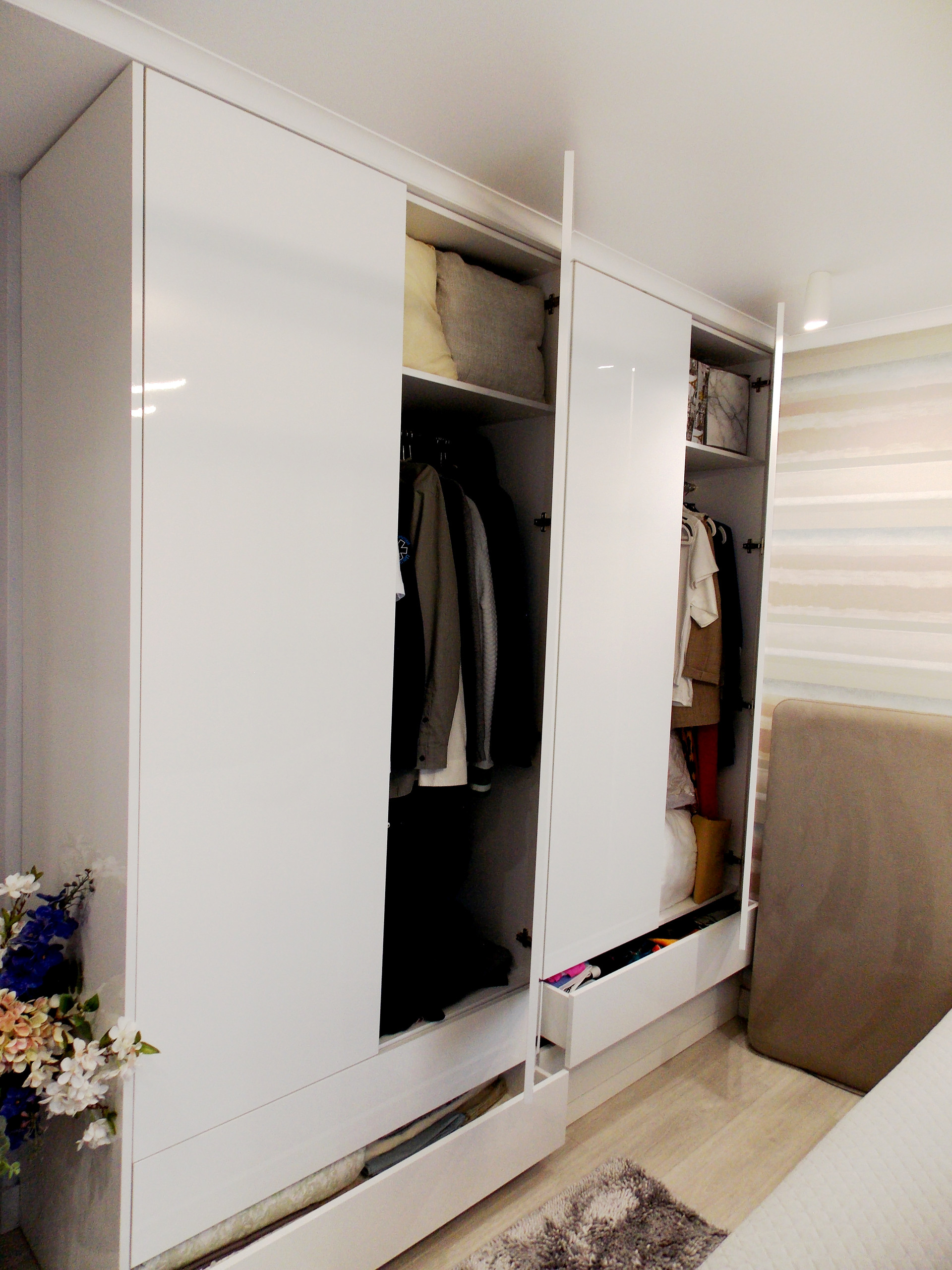 Кровать в спальне выполнена на фабрике в г.Москва по индивидуальному заказу.