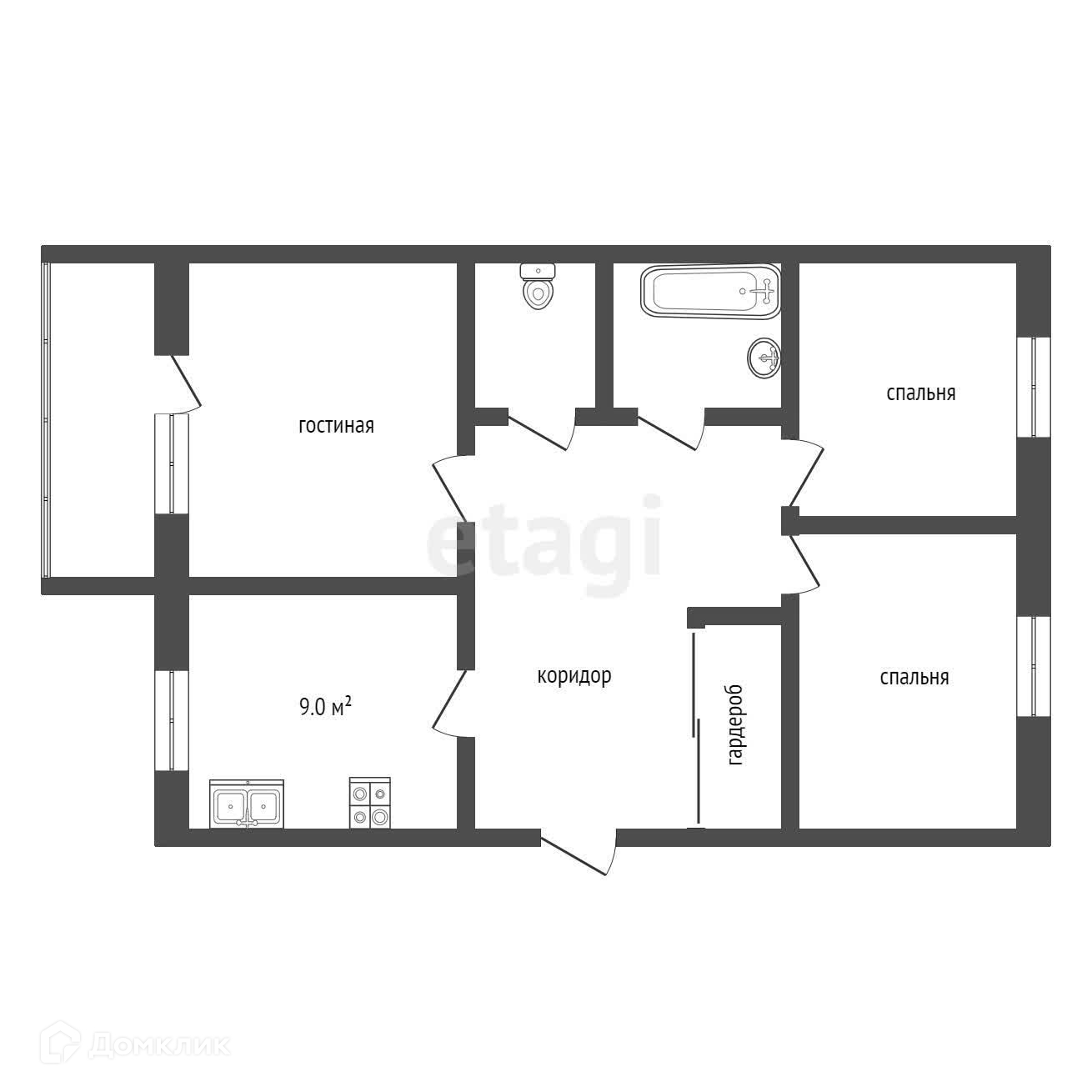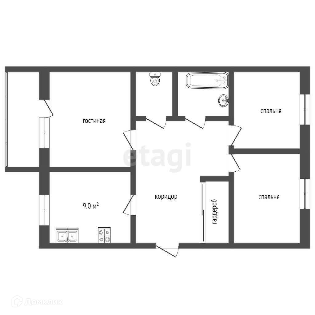 Площадь кухни 9 м2