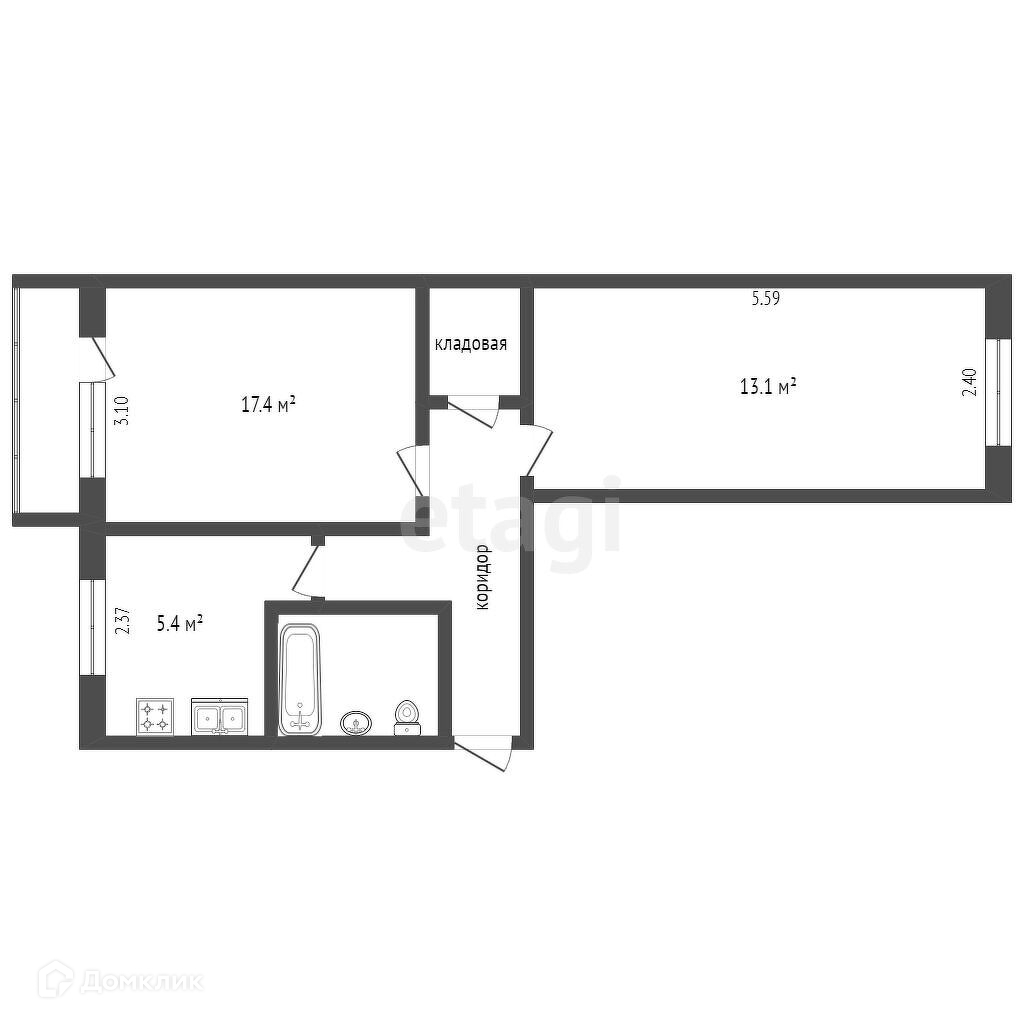 Площадь кухни 5.4 м2