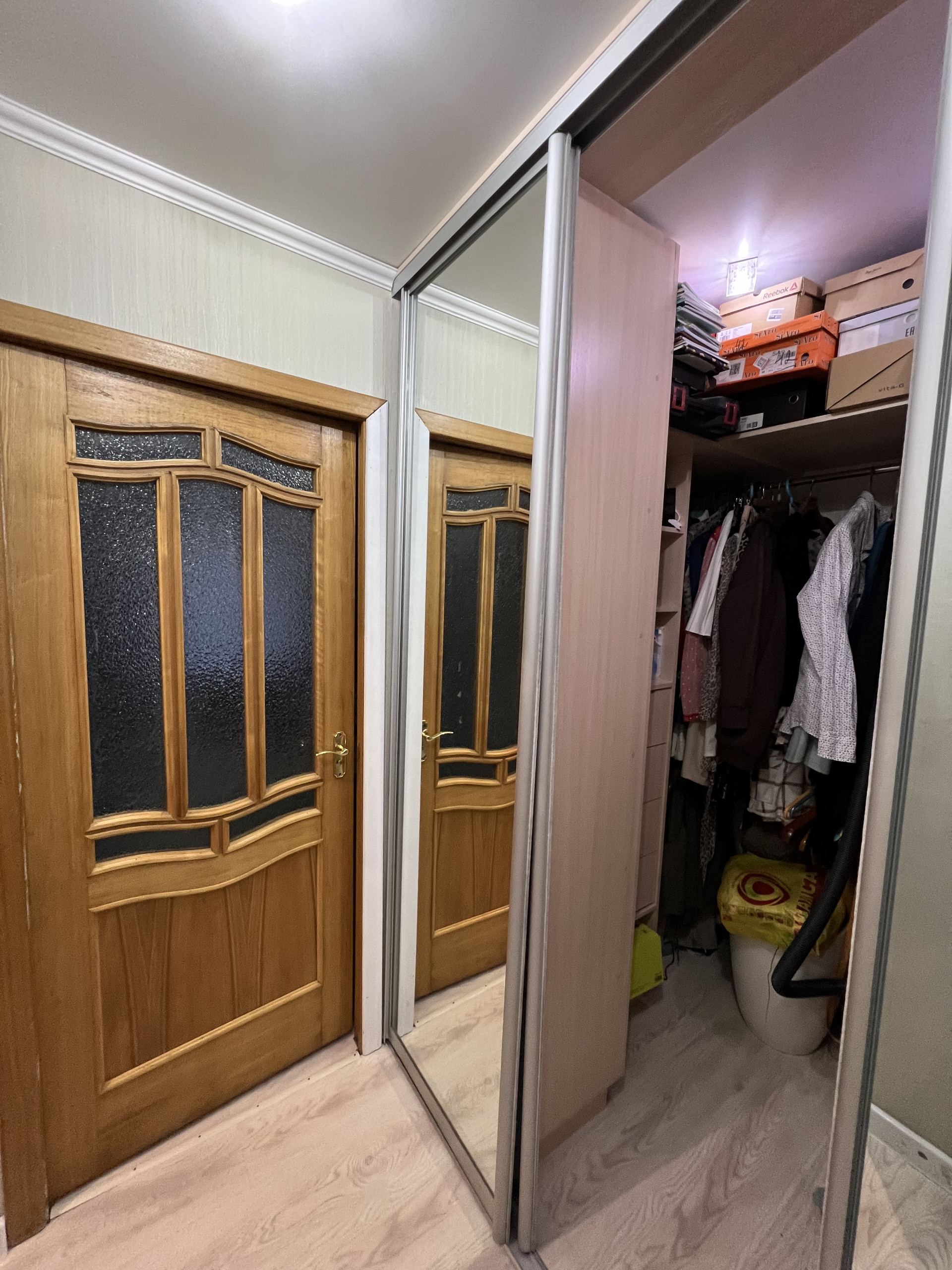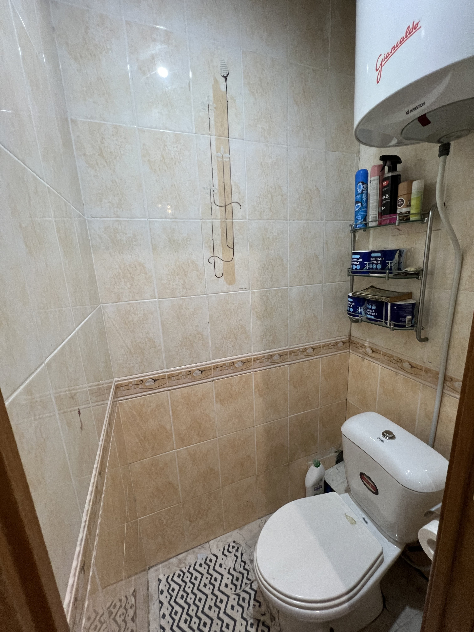 На полу устелен ламинат, вся сантехника поменяна.