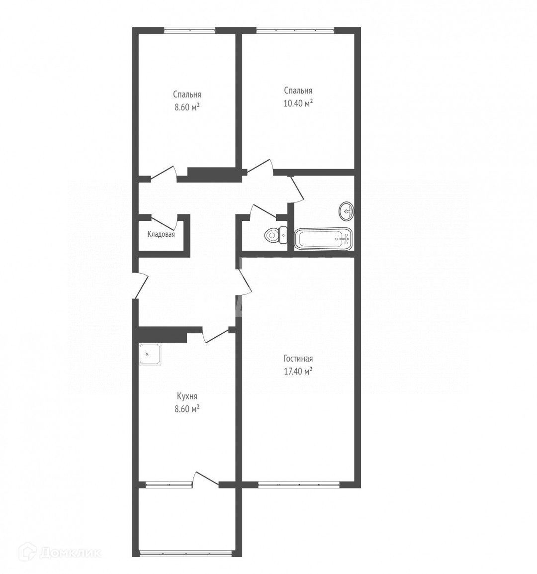 Третья комната 8,6м² может быть использована как детская, или же как кабинет.
