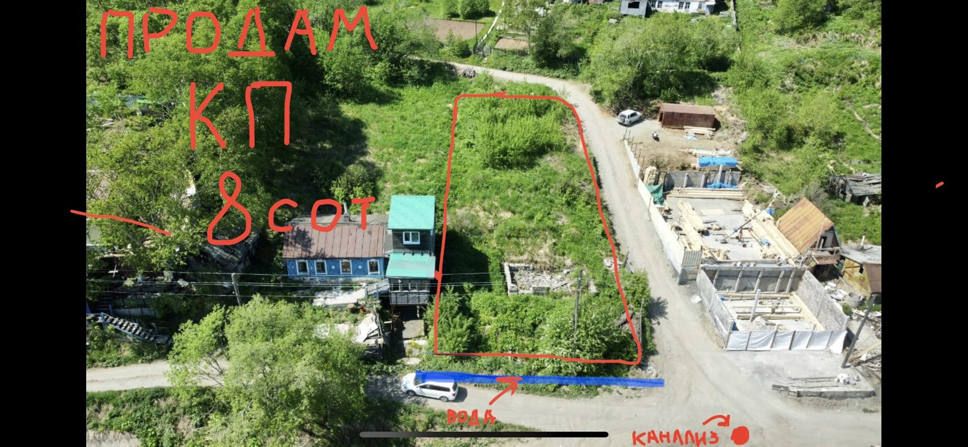 Земельный участок на кп 8 соток в аренде на 49лет,есть рядом вода,канализация,электричество! По документам дом есть ,фактически нет так как хотел строить новый.