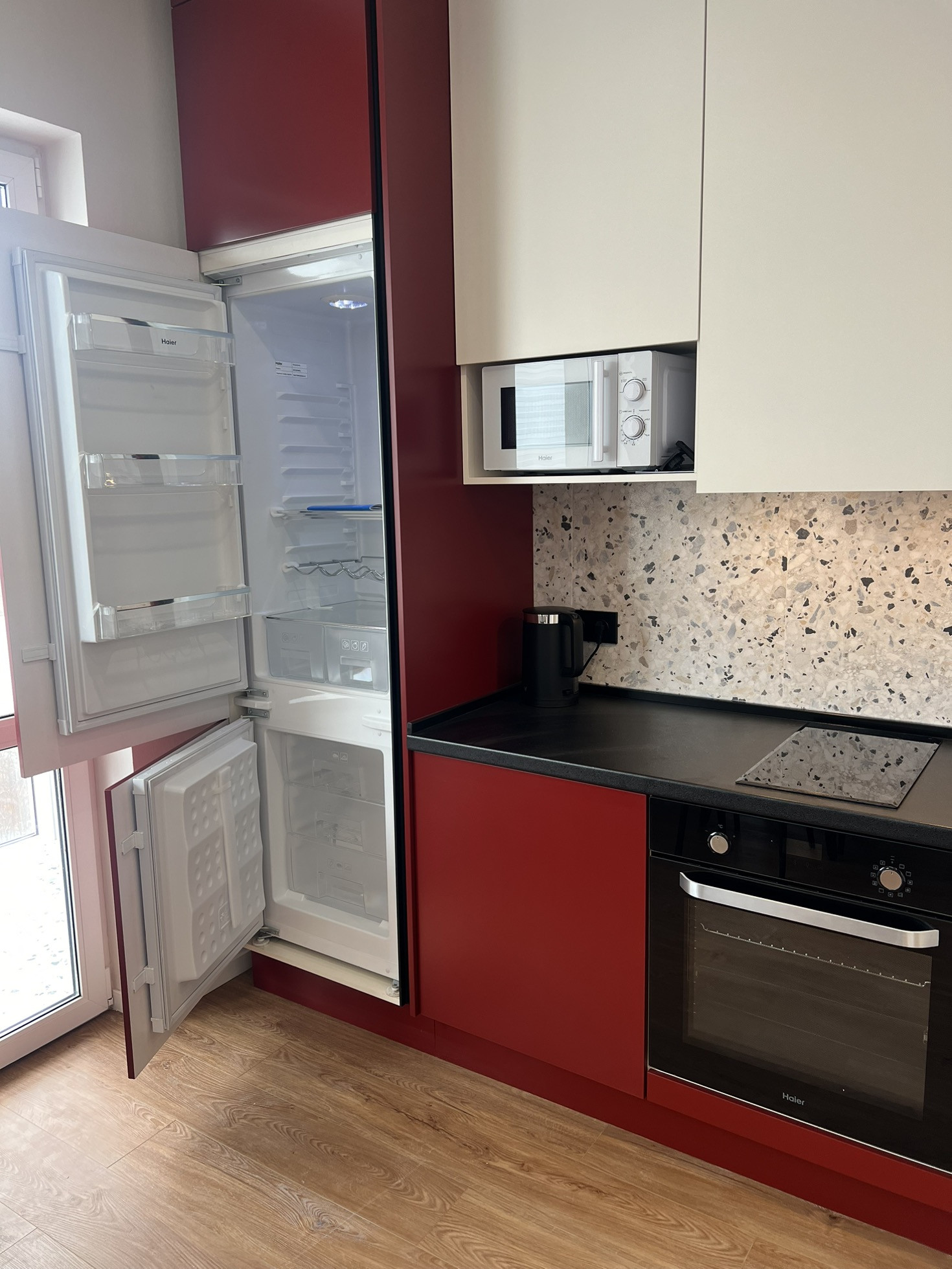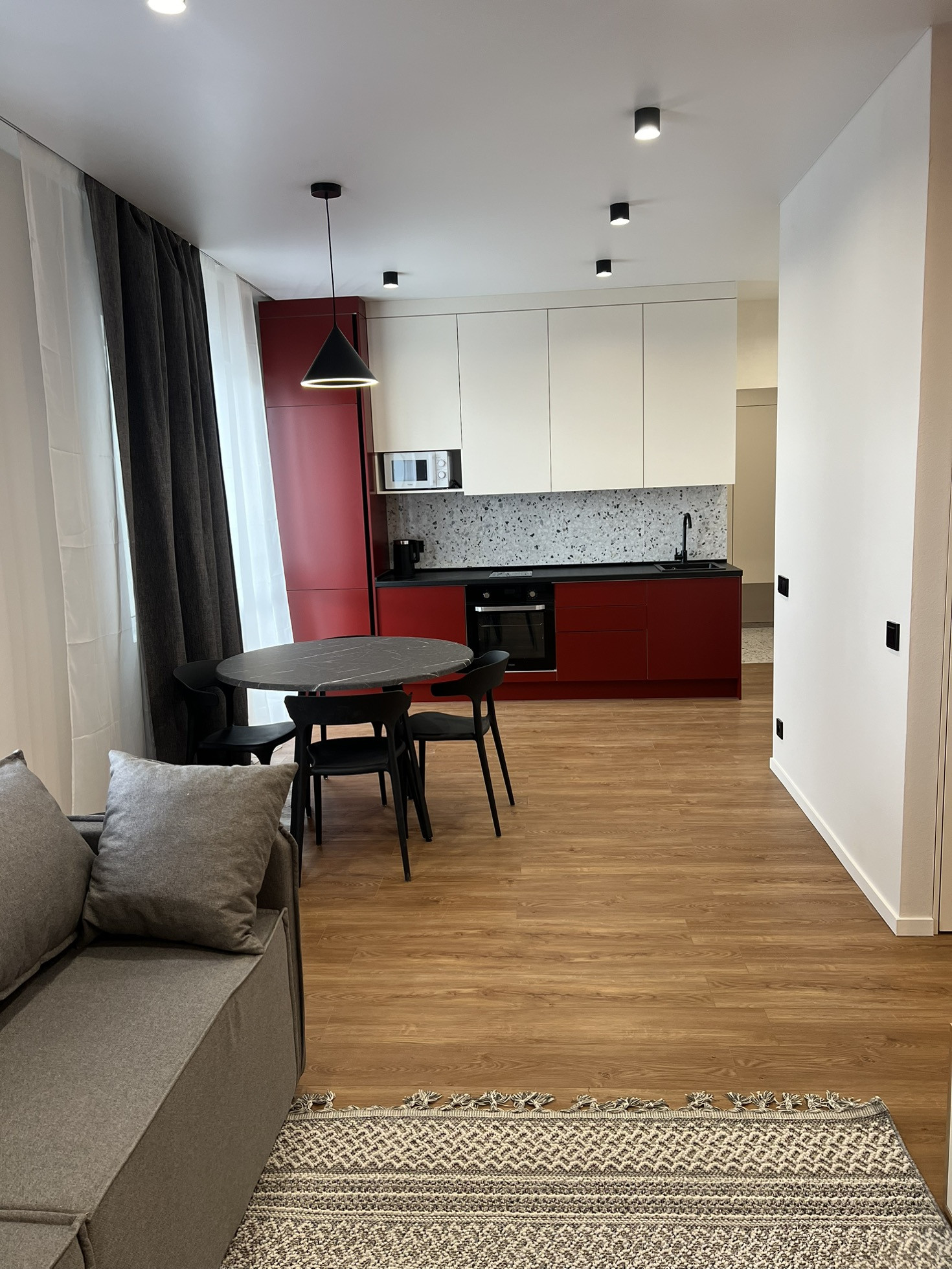 Квартира оборудована, всем необходимым, для комфортного проживания: Wi-Fi, двуспальная кровать, диван, вместительные шкафы, телевизор с плоским экранам (кабельное телевидение), стиральная машинка автомат, двухкамерный холодильник, микроволновая печь, варочная панель и духовой шкаф, чайник, утюг, кухонная утварь.