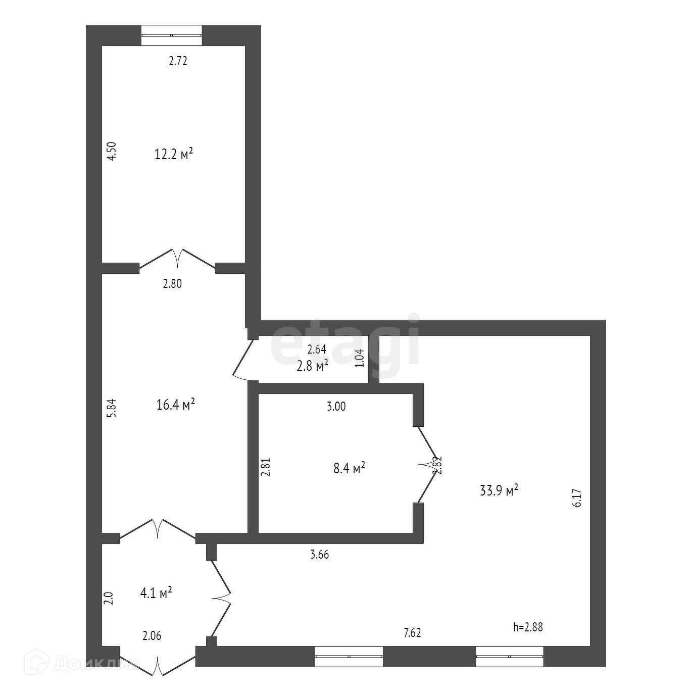 - высота потолков - 2,88 кв.м.;