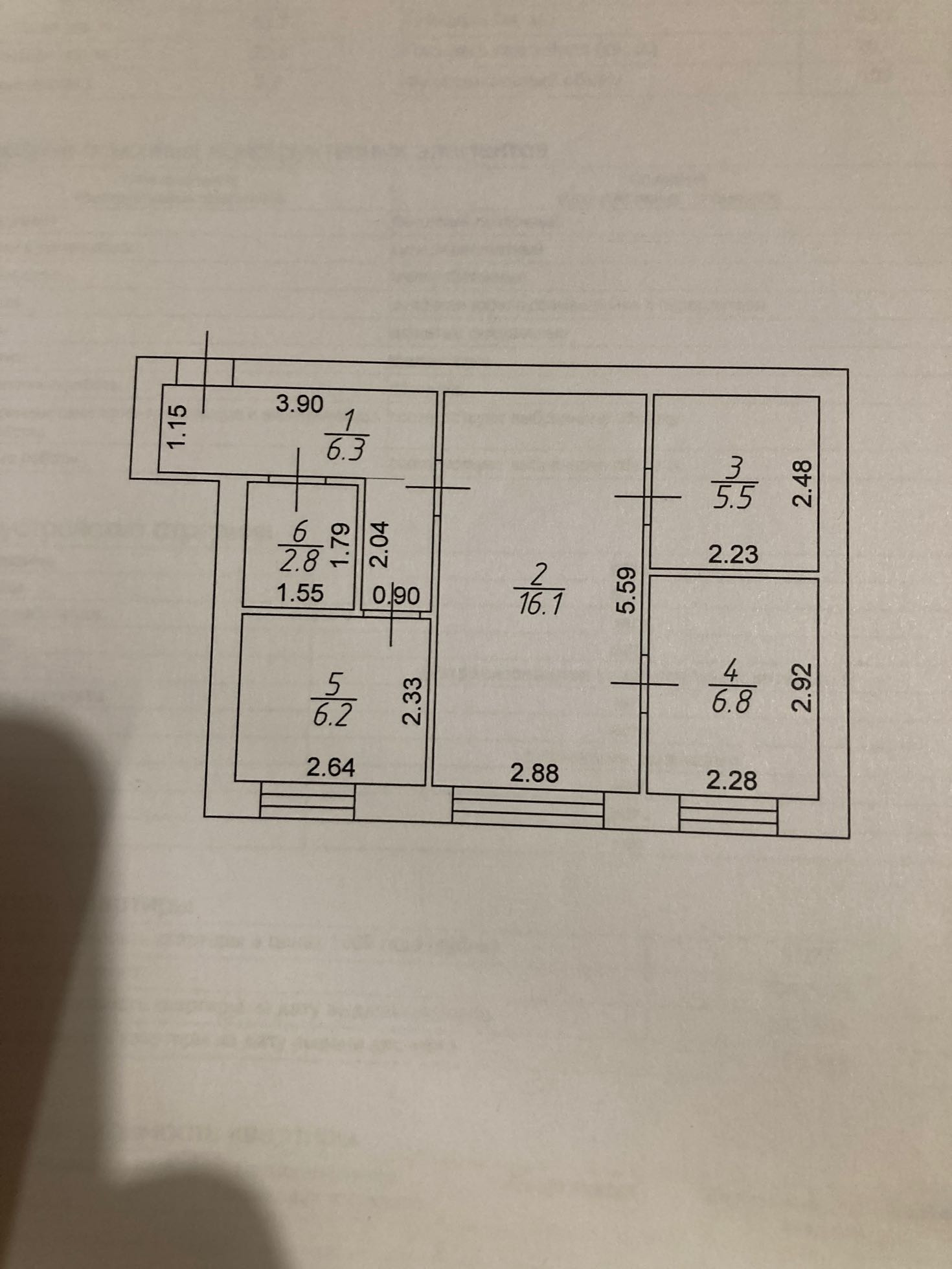Площадь кухни 6.2 м2