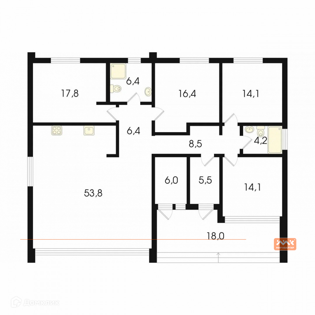 Жилая площадь 134 м2