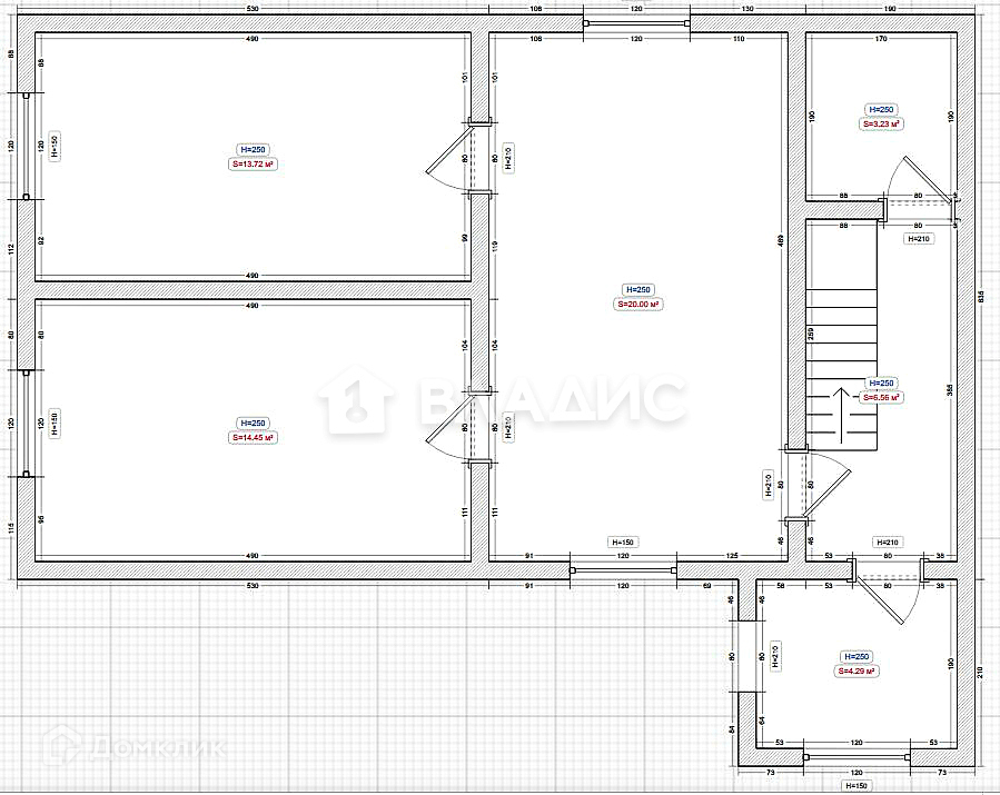 Площади помещений: