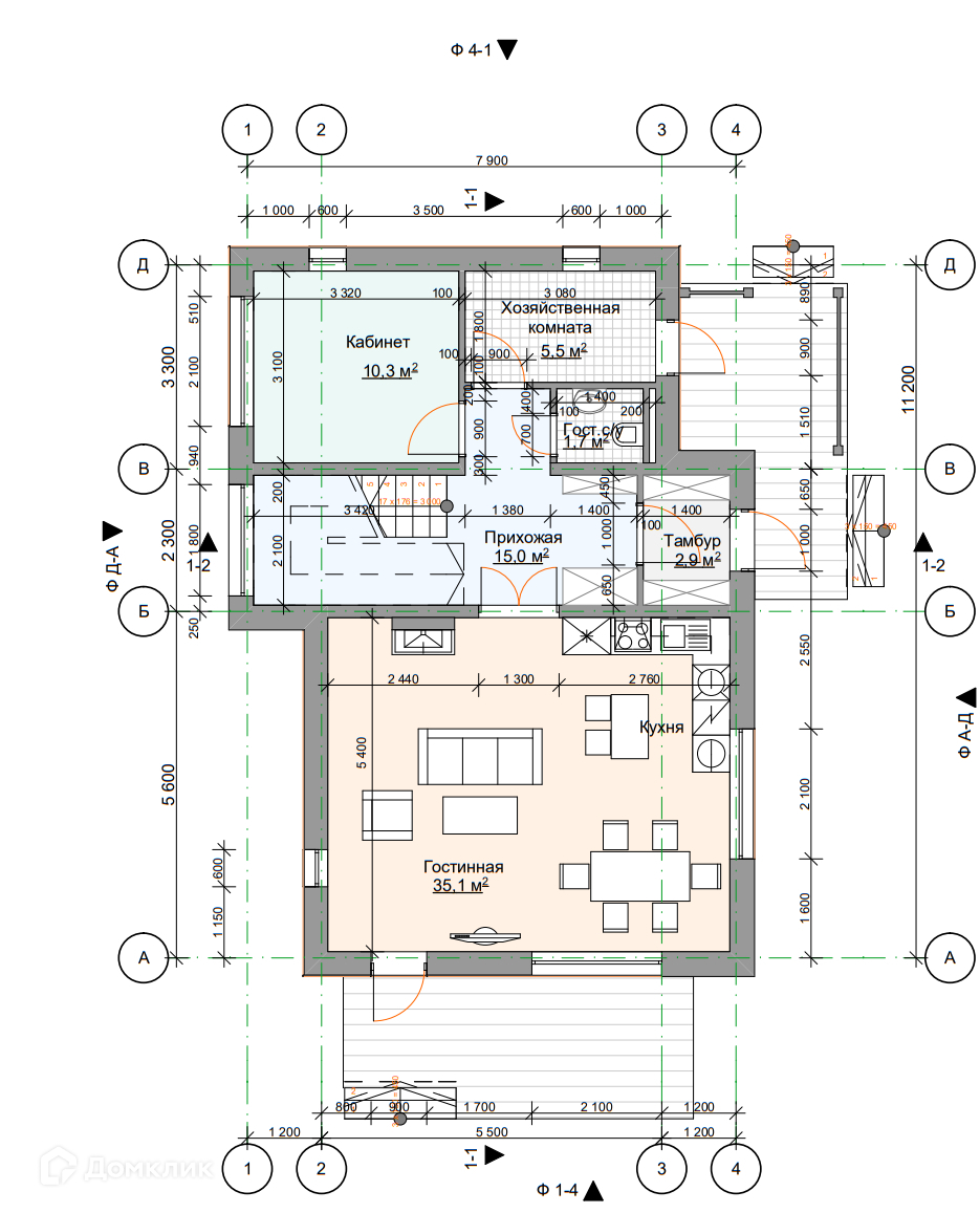 — Фундамент: монолитная плита 350 мм.