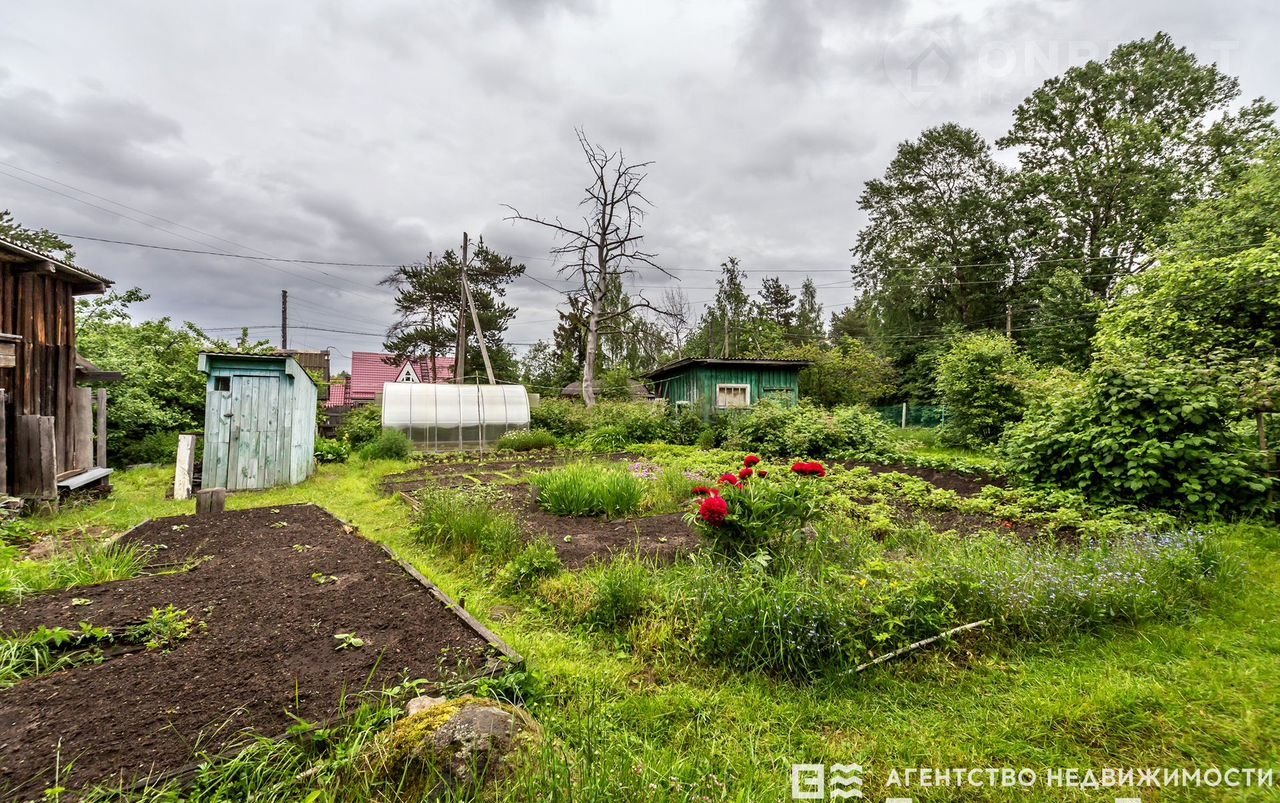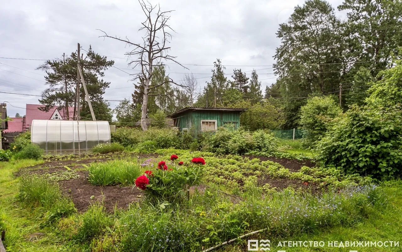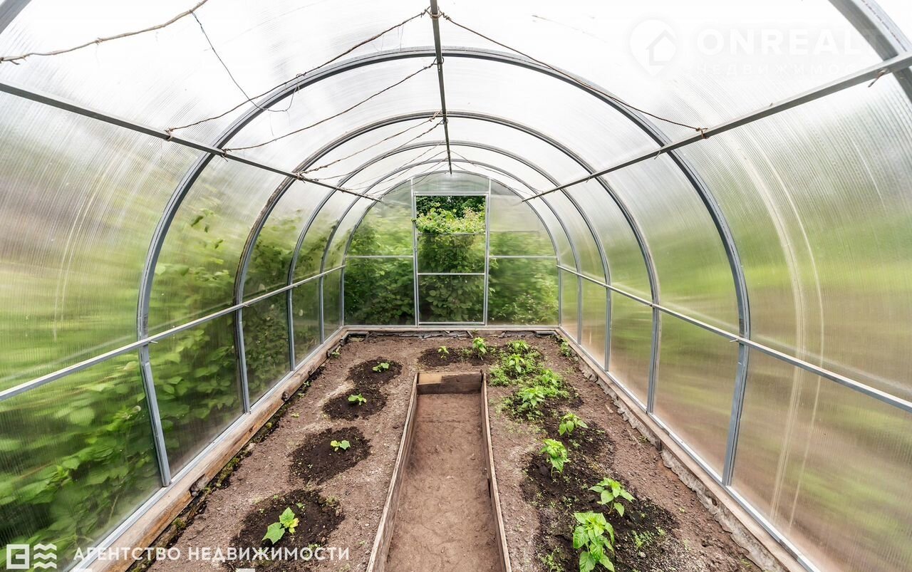 Ухоженный участок с постройками: летняя кухня, баня, хозяйственный блок, туалет, теплица.
