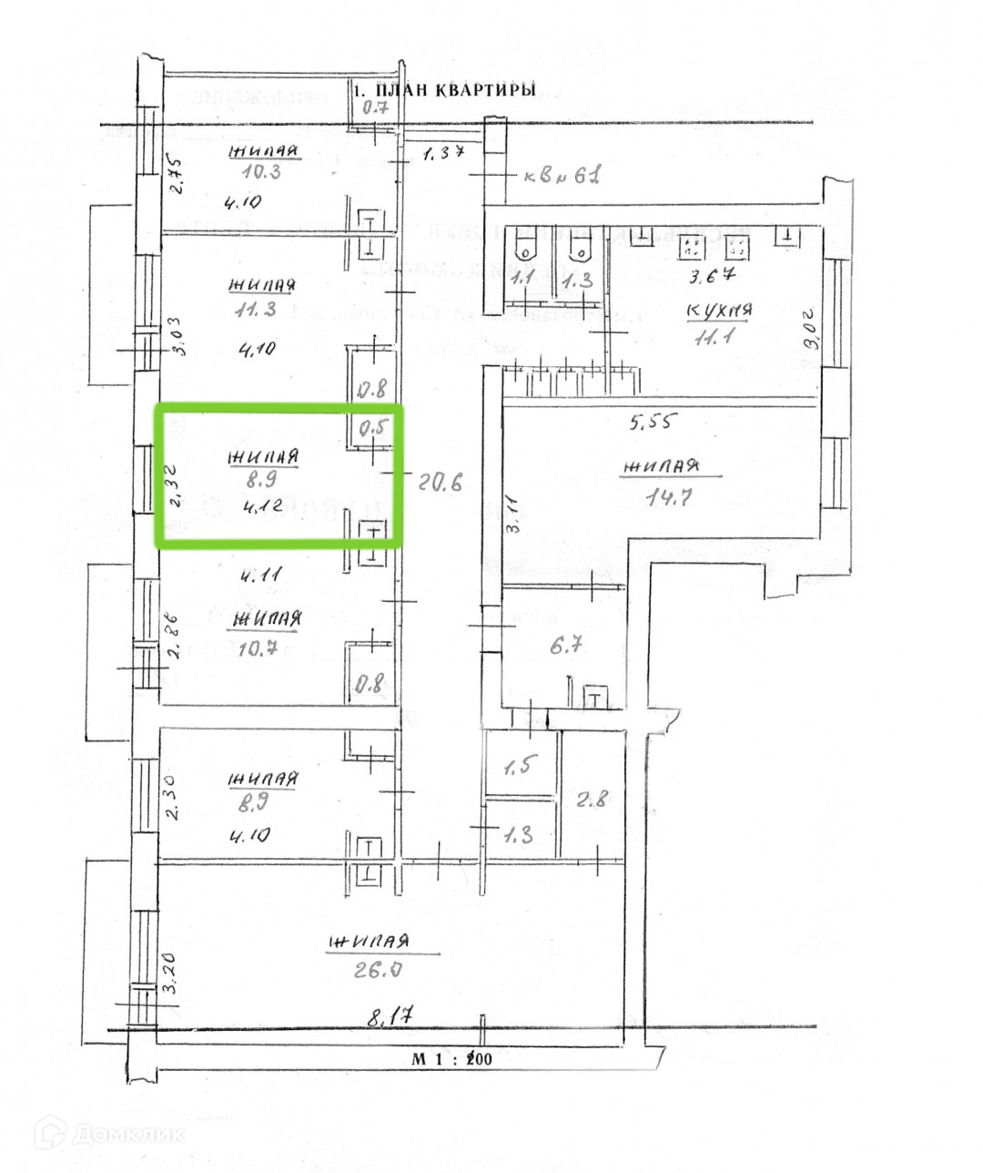 Жилая площадь 8.9 м2