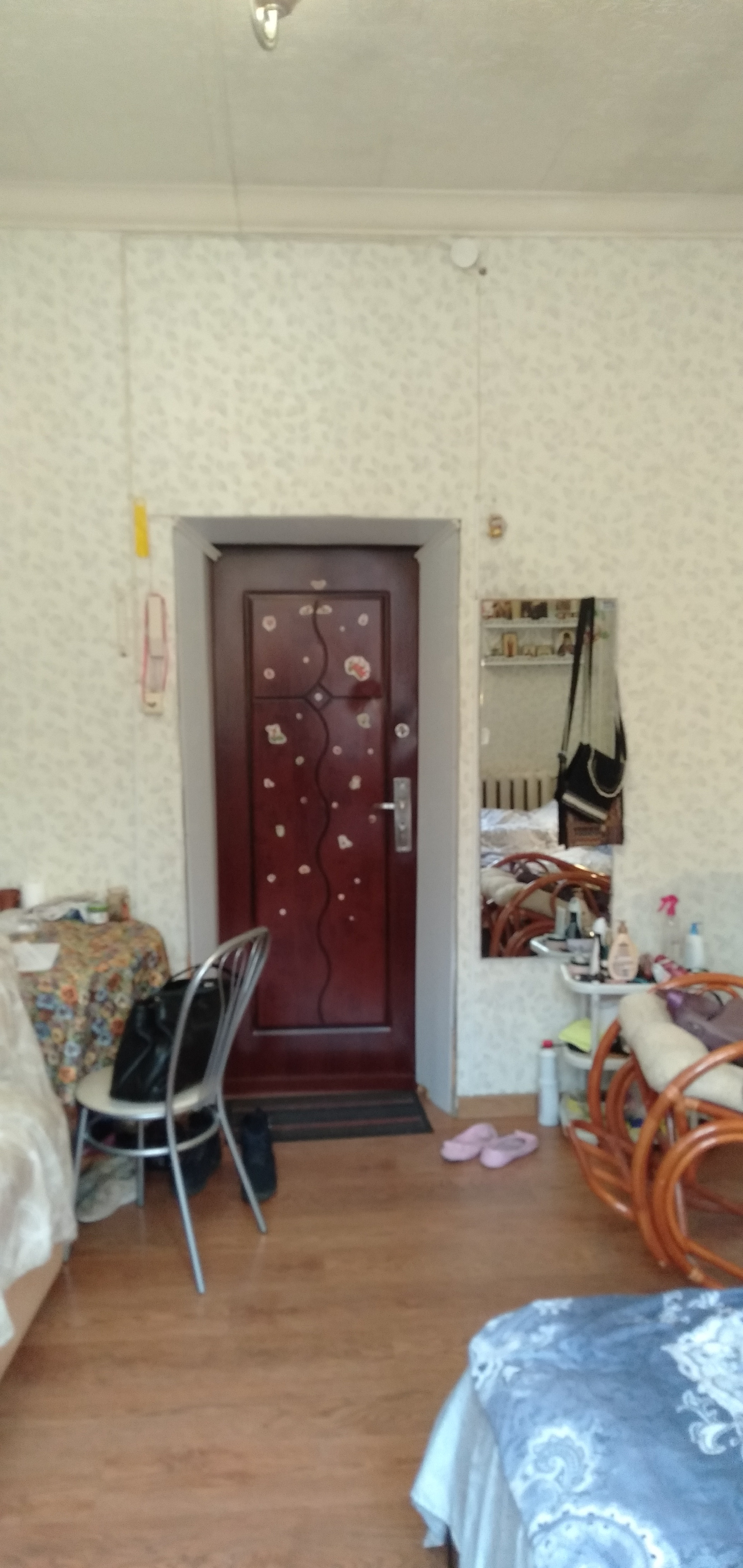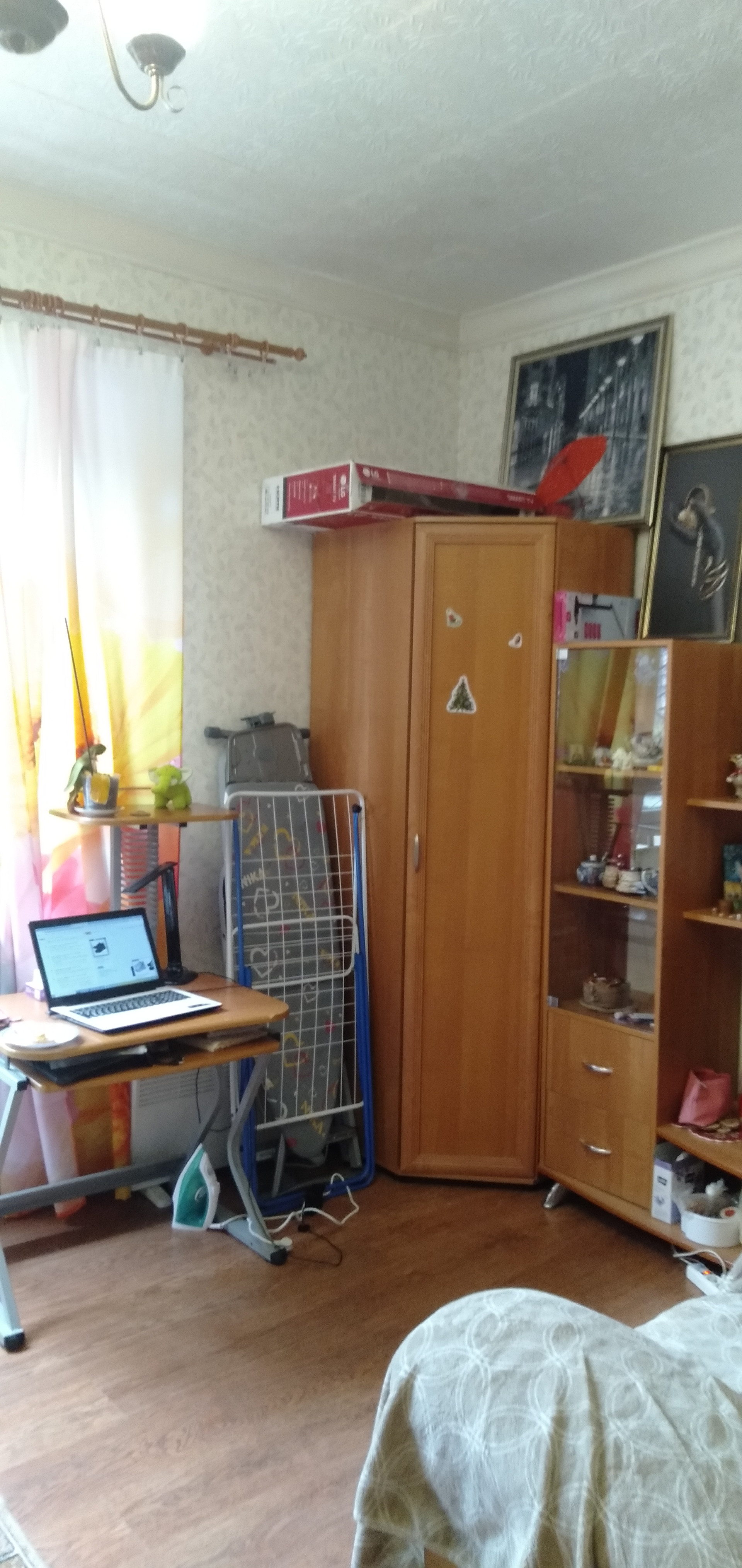 Комната большая,светлая,очень теплая.Состояние -хорошее.На полу-ламинат.При желании, можно разделить на зоны,провести коммуникации в комнату,санузел-напротив комнаты и на первом этаже-нежилые помещения.