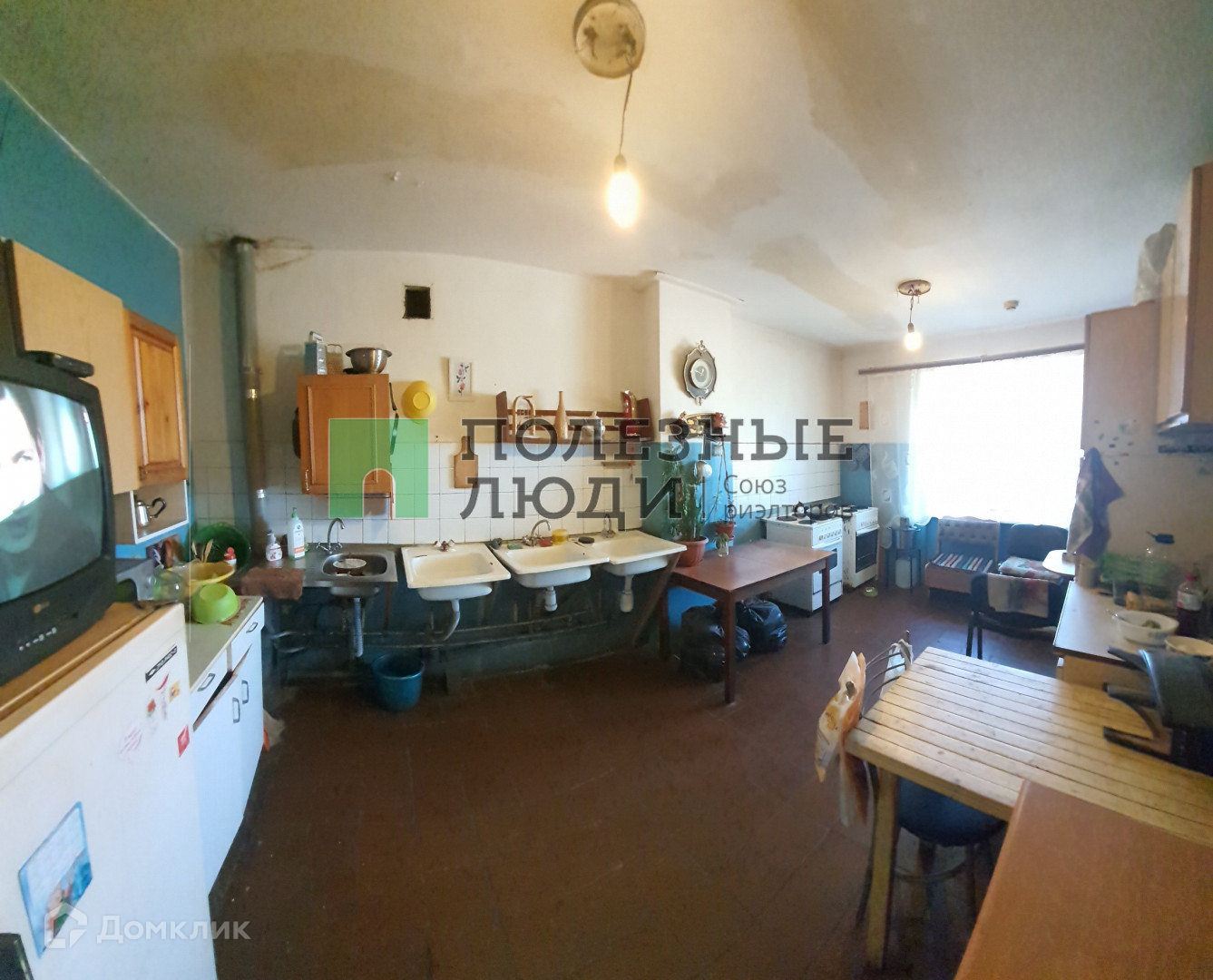 Кухня с электроплитами, эл.плита своя личная на 1 комнату, также свои кухонные шкафы и стол на кухне, можно провести воду в комнату, так как за стеной находятся все коммуникации.