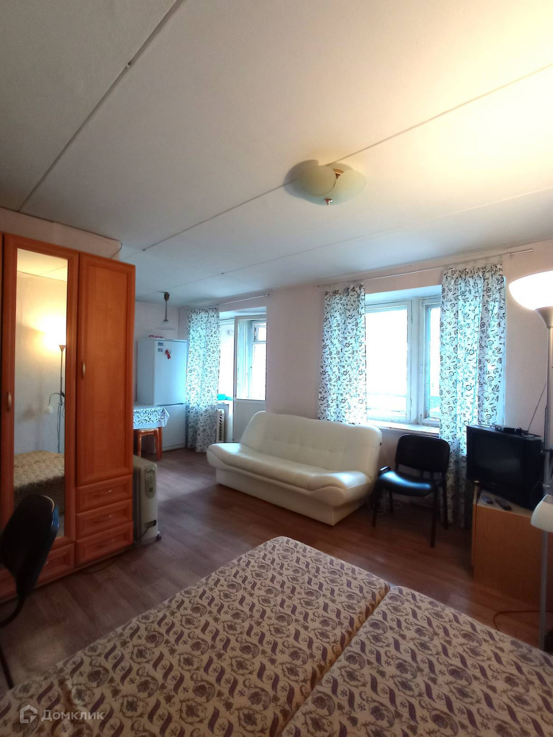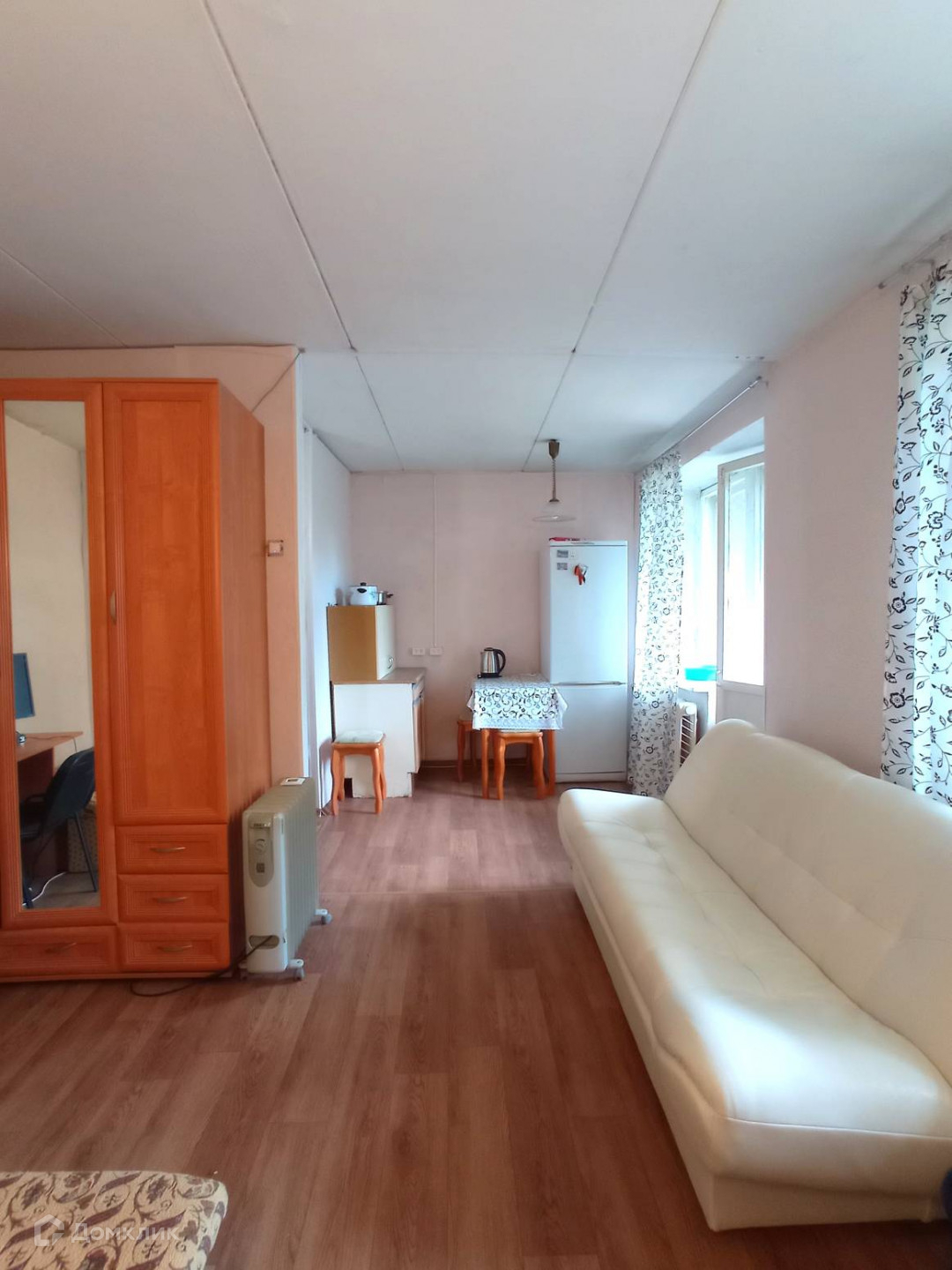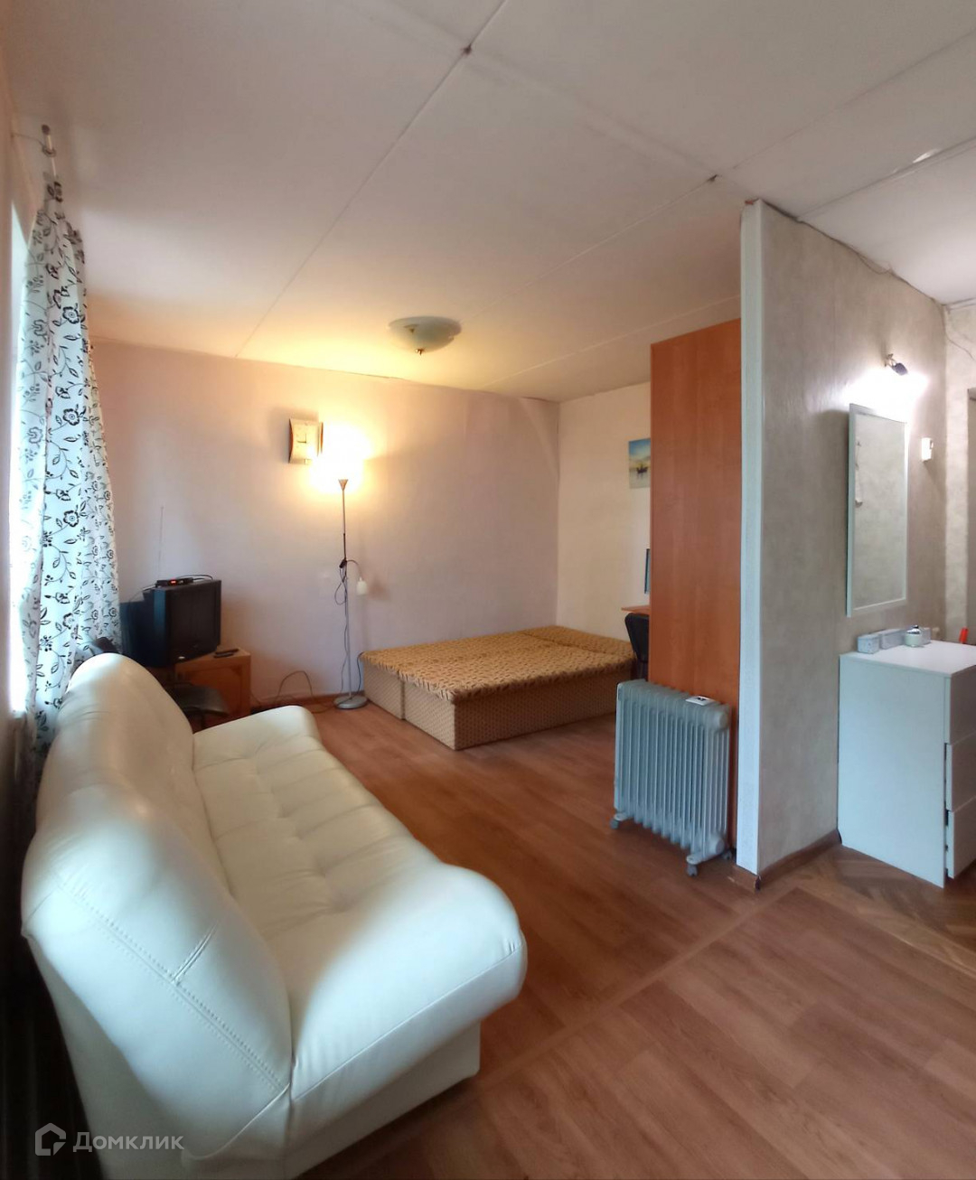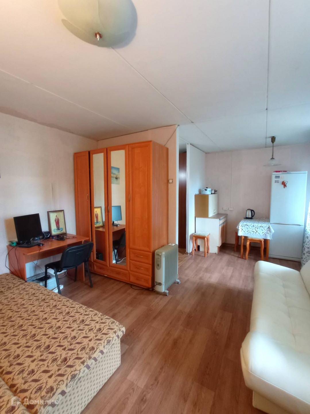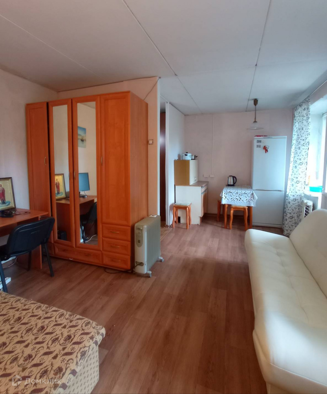 Комната просторная, состоит из спальни, кухонной зоны и прихожей