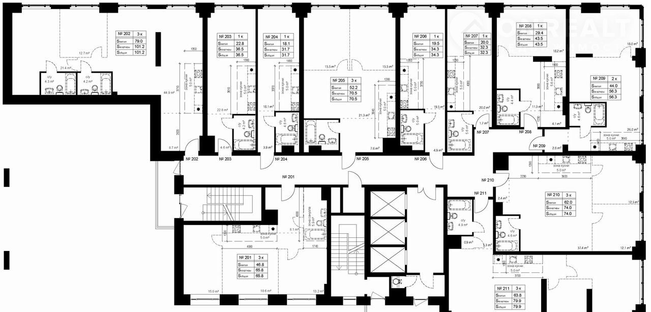 Жилая площадь 44 м2