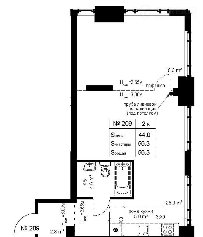 Общая площадь 56.3 м2