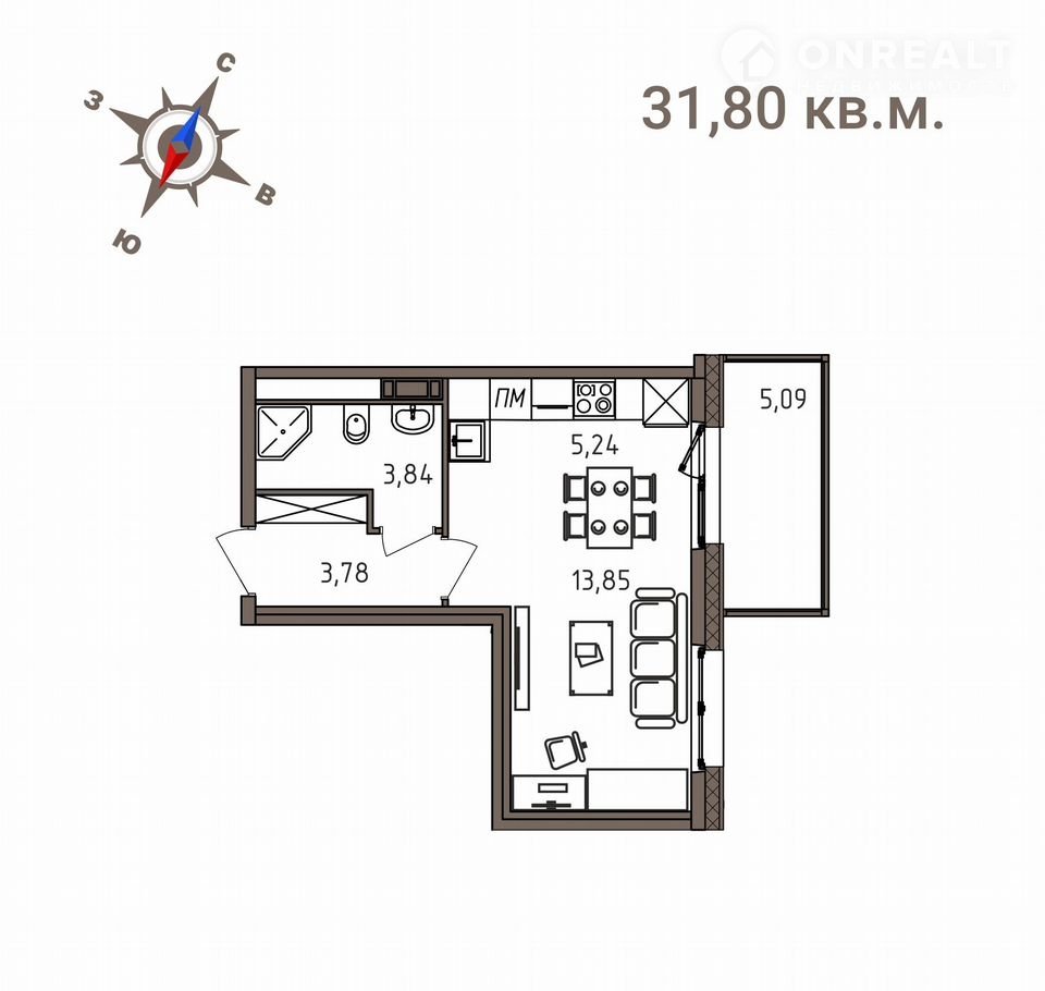 Общая площадь 31.8 м2