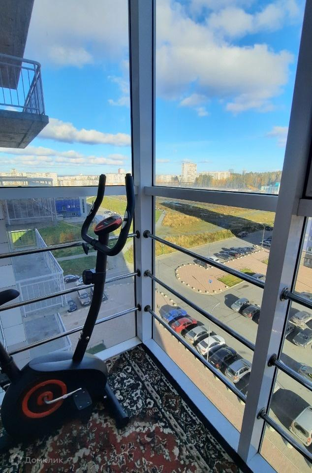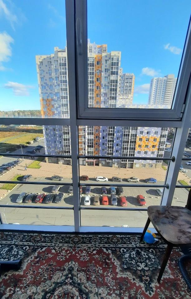 В квартире одно окно, совмещенное с выходом на остекленный балкон. Остекление и балконной двери и самого балкона панорамное - от пола до потолка, выполнено со стеклопакетами. Балкон выходит на солнечную сторону (восток) - солнце в квартире в первой половине дня.