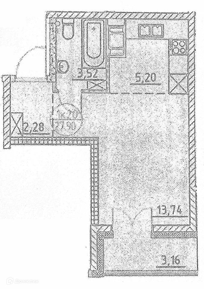 Площадь кухни 5.2 м2