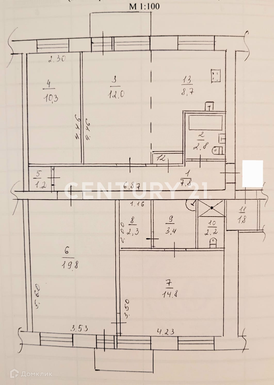 - Данная квартира образована из двух соседних. Объединение и перепланировка узаконена.