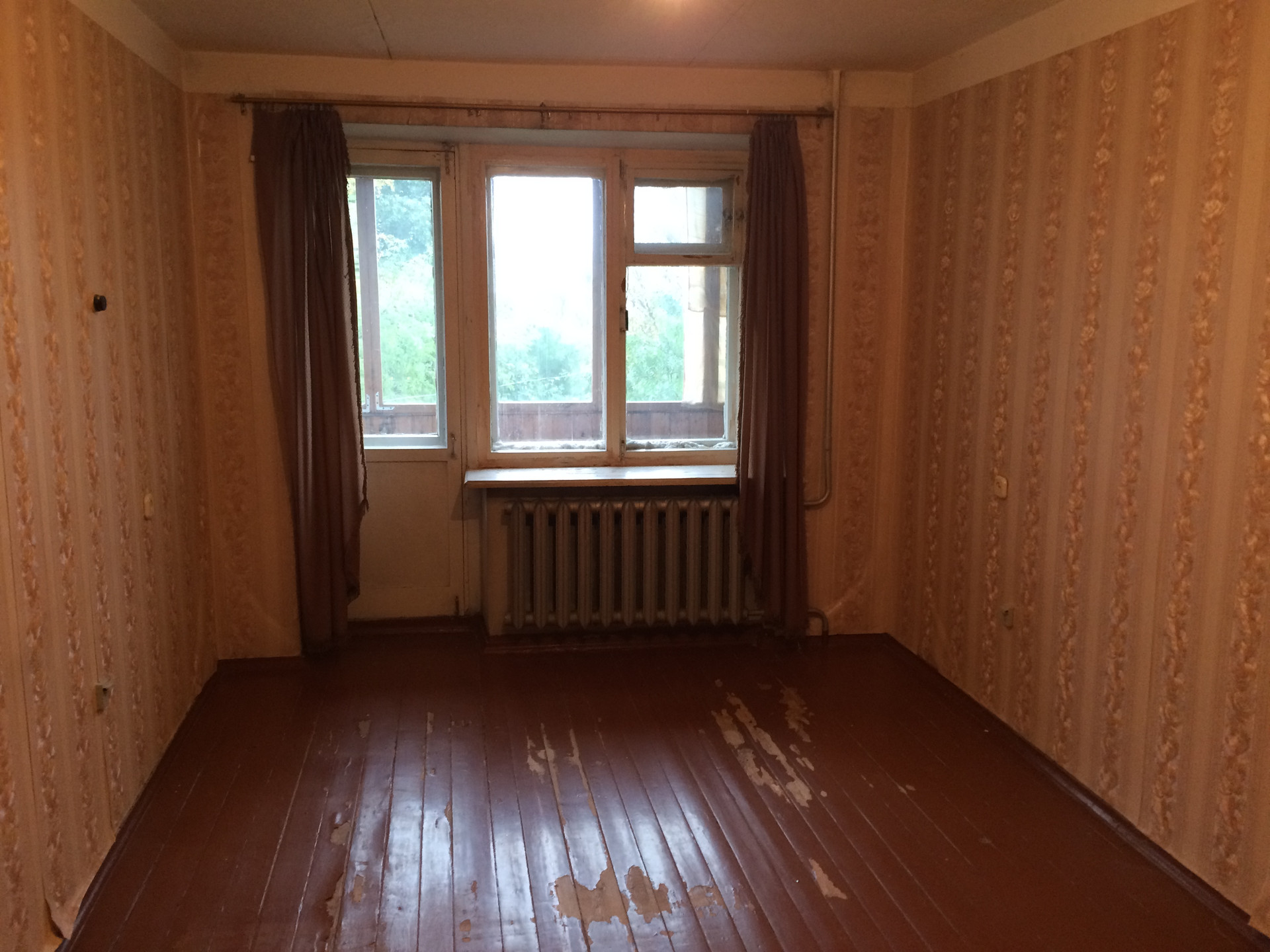 Требуется ремонт. Квартира освобождена для отделки. В квартире нет несущих стен, возможна любая перепланировка, переоборудование, дизайнерский проект.